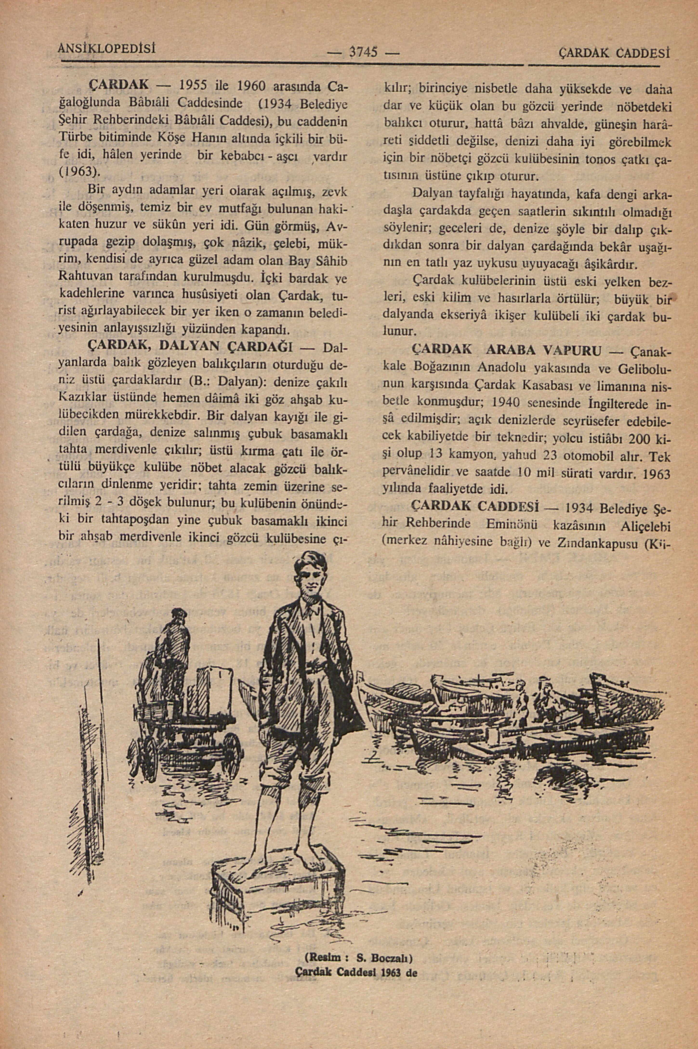 “İstanbulda hayret uyandıracak pek çok şey vardır. Bunlardan biri de Haliç’in Yağ İskelesi kıyısındaki Çardak Sokağıdır. Bu sokağı altı ay önce, iskelede vukubulan bir çöküntü üzerine sular basmış ve Haliç suları gelip, yağcı ve zeytinci dükkânlarının eşiklerine dayanmıştır. O günden bu yana, sokağın durumuyla kimse ilgilenmediği için, bazı dükkânların eşikleri yükseltilmiş yolun bazı kesimlerine de kalaslar atılarak köprücükler yapılmıştır. Zamanla motorlara yağ taşıyan sandallar da dükkân kapılarına kadar yanaştırılmıştır. Şimdi sokakta at arabaları, sandallar, kamyonlar ve otomobiller birarada dolaşmaktadır. Dükkân sahipleri, sandallar arasında çizmeyle gezdikleri sokağa Sandal...