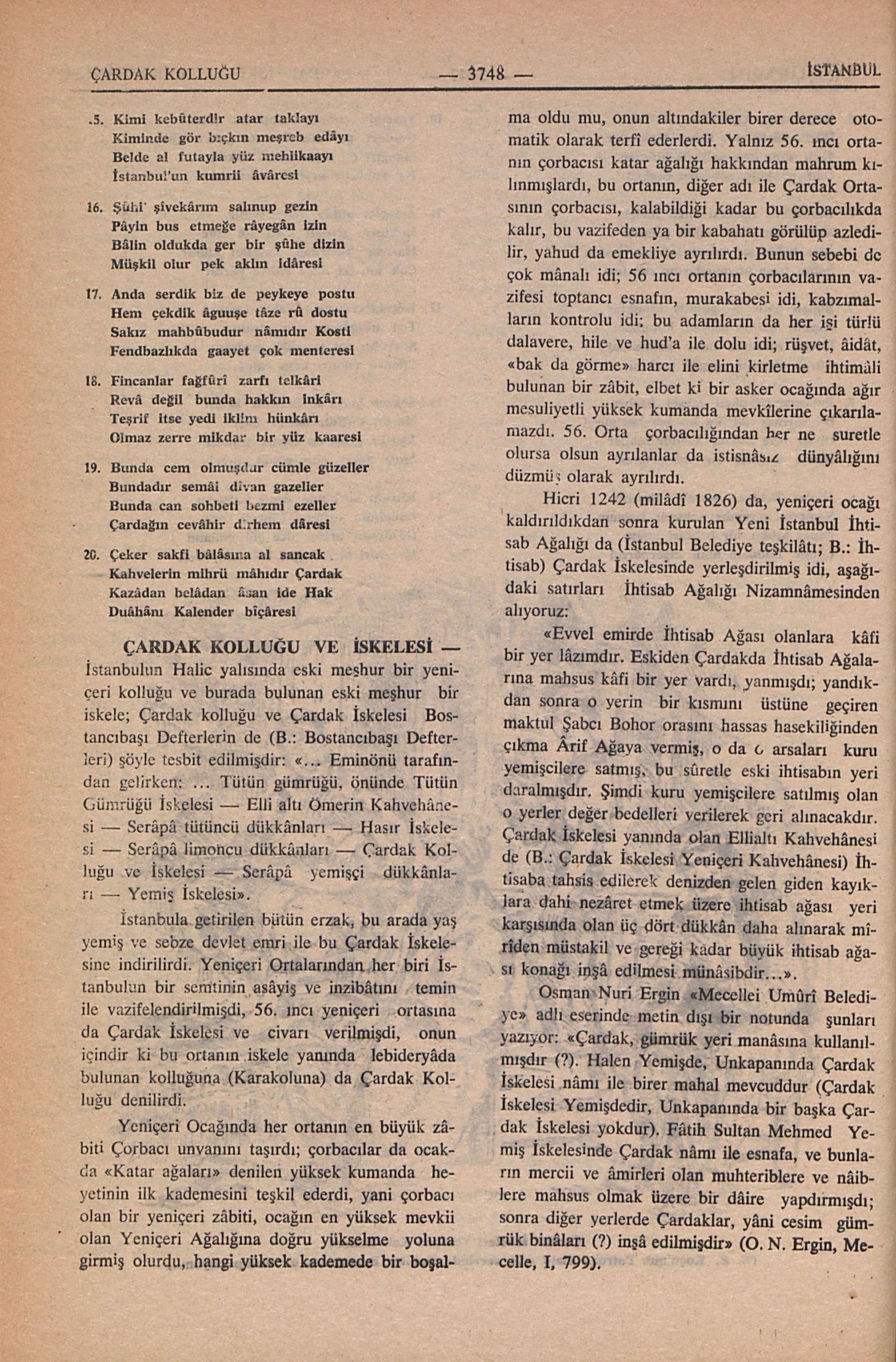 B.: Bostancıbaşı Defterleri; B.: İhtisab ; B.: Çardak İskelesi Yeniçeri Kahvehânesi; B.: Çardak Kolluğu Vak’ası