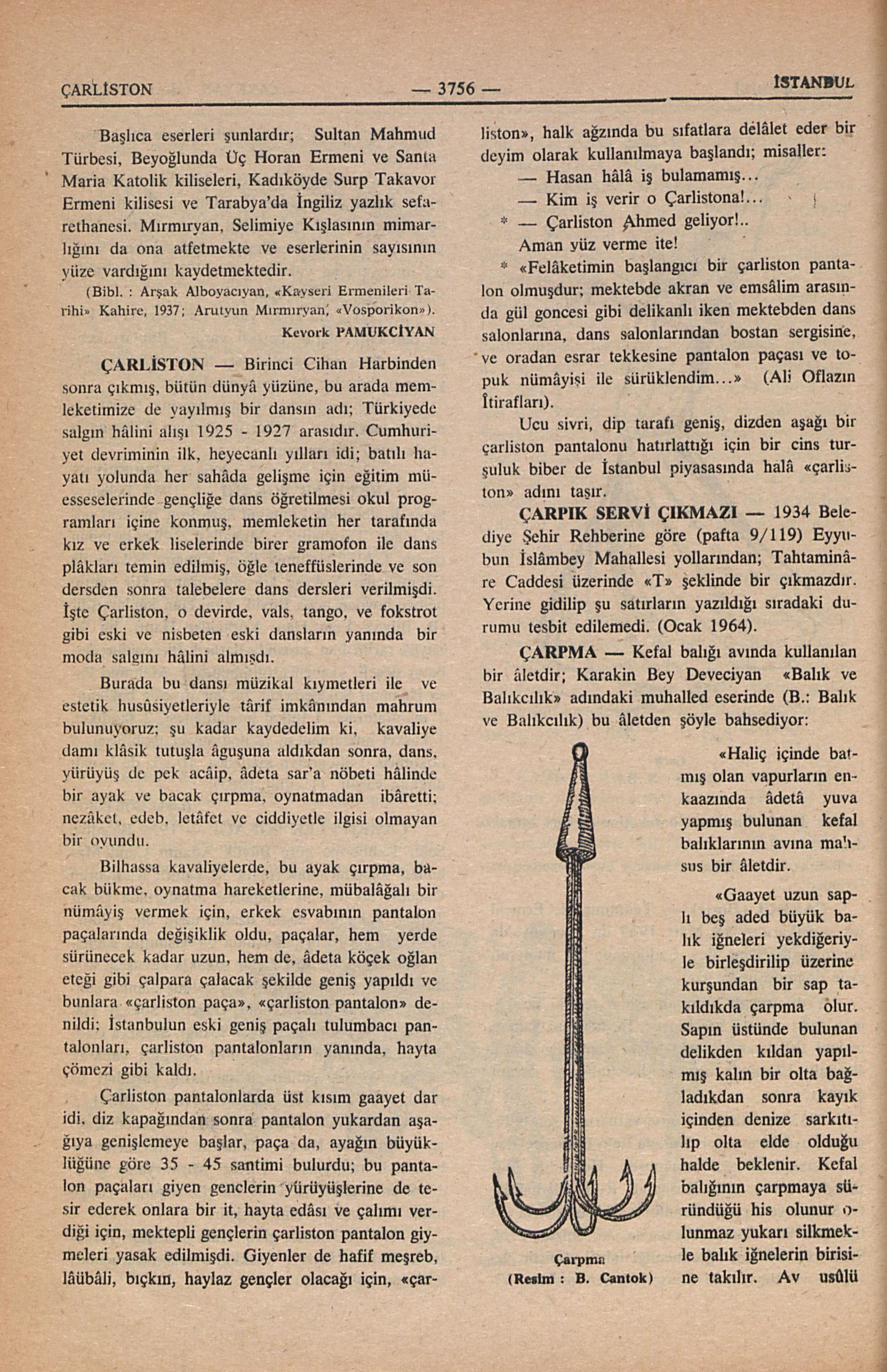 K. Deveciyanın ifâdesi gaayed açıkdır; yukarıdaki satırlardan çarpmanın yalnız Halicde kullanıldığı anlaşılmaktadır. İşte bu noktayı hayli soruşturmamıza rağmen tesbit edemedik.