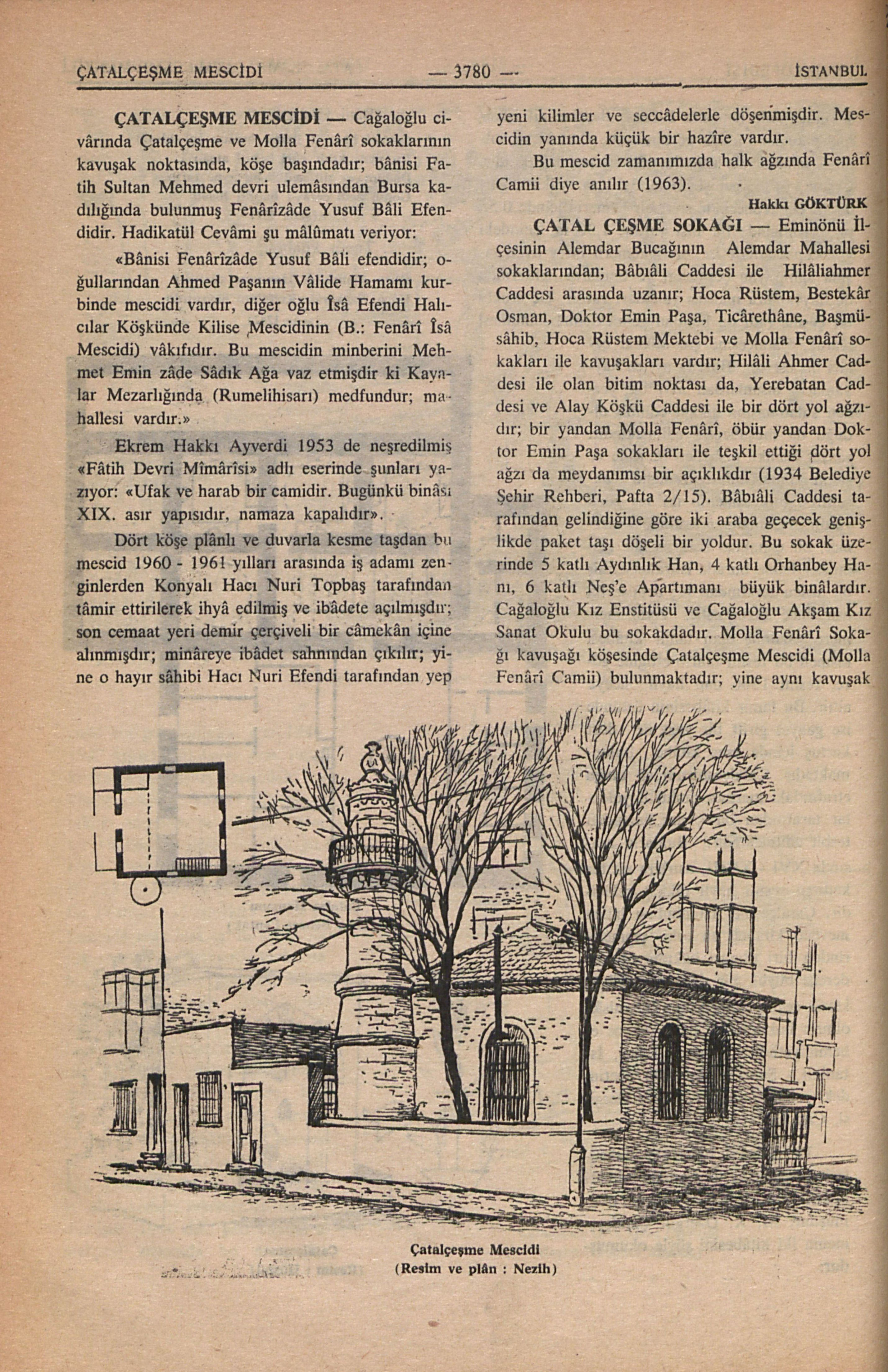 Bu mescid zamanımızda halk ağzında Fenâri Camii diye anılır (1963).