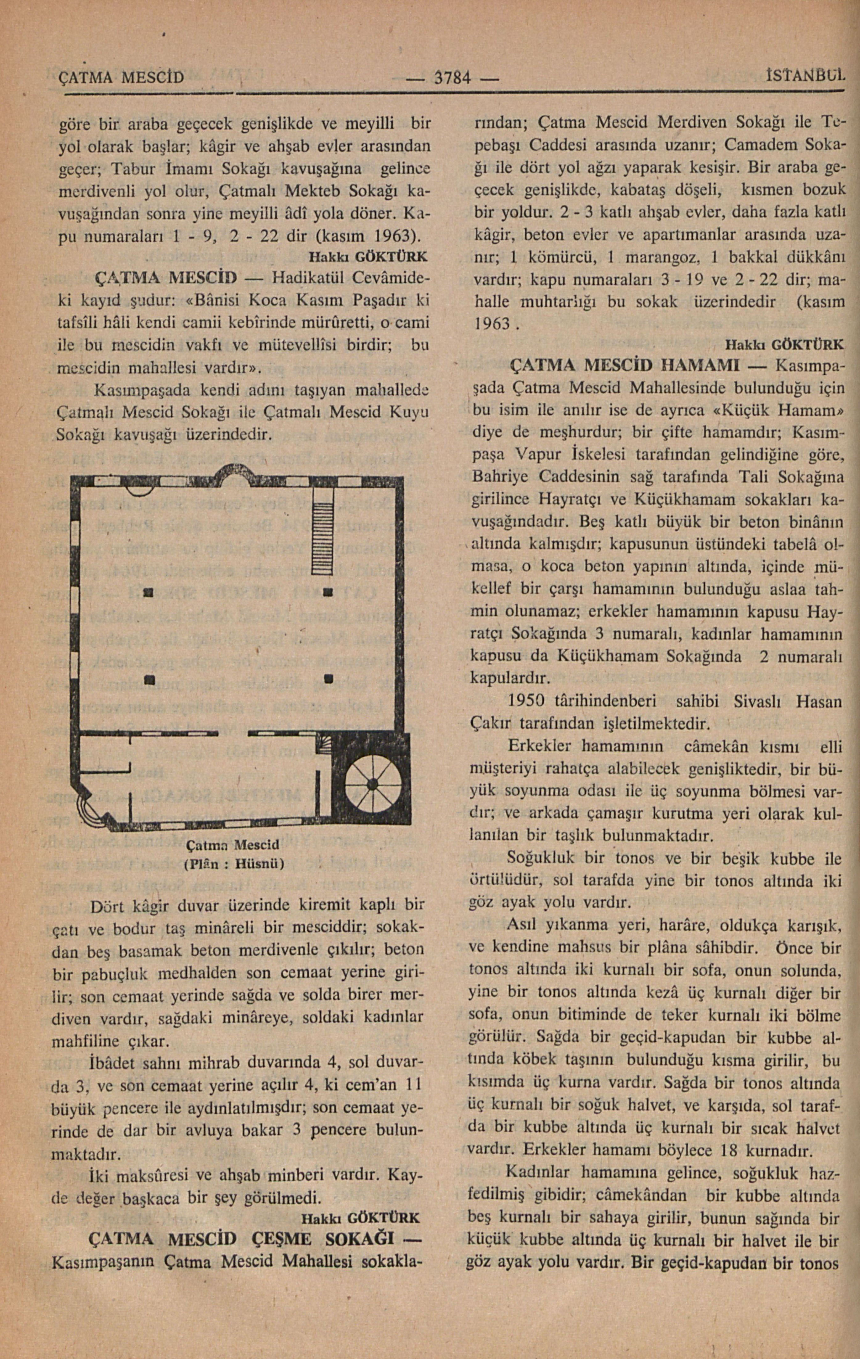 ÇATMA MESCİD ÇEŞME SOKAĞI