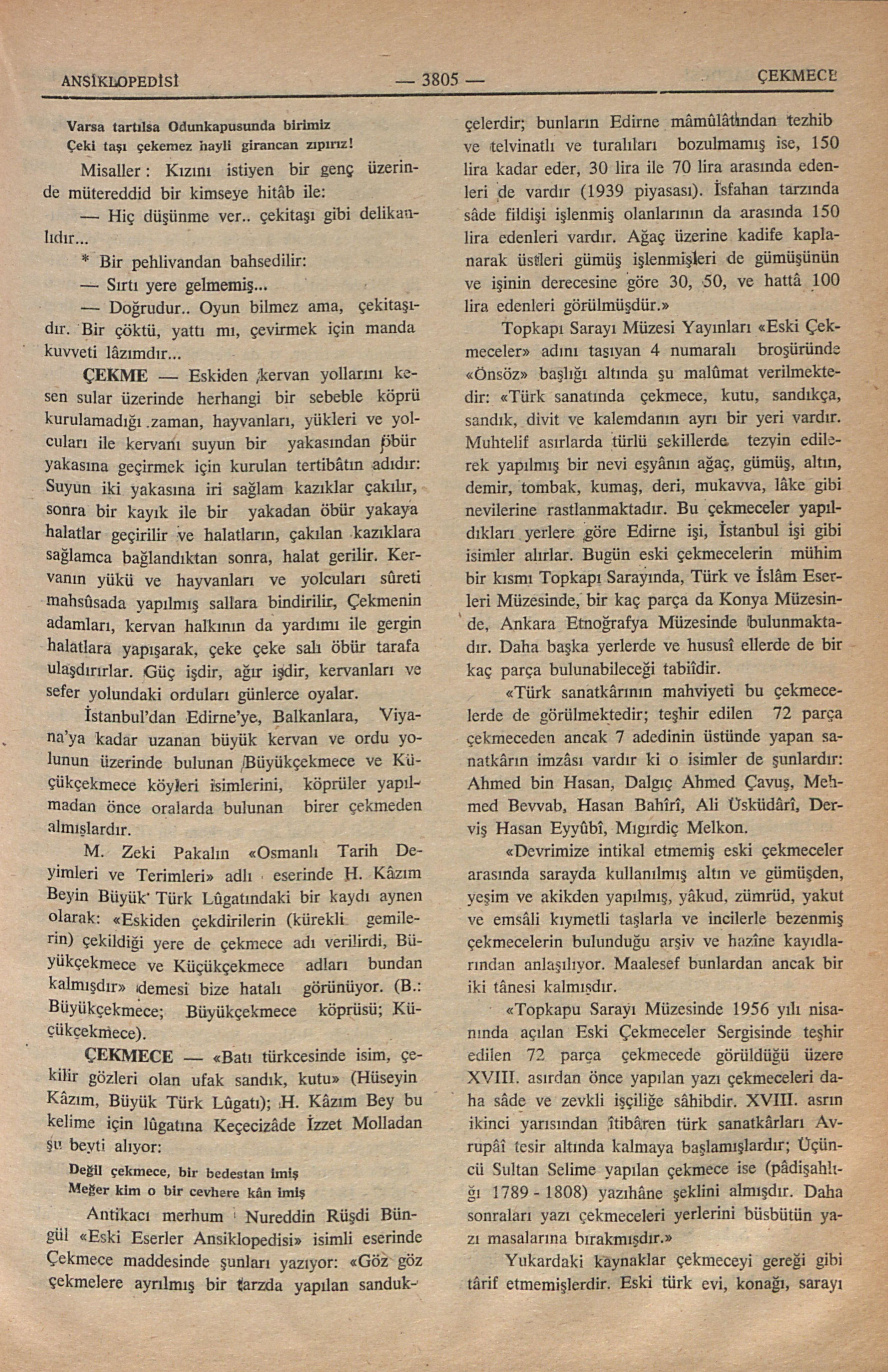 (B.: Çeki); Halk ağzı deyim: “Zıpırın aksi, ağır başlı, sikletçe ağır adam”; geçen asrın hiciv şâiri Sürûrî çekitaşını bir mürekkeb isim olarak halk ağzı deyimle alay yollu tamamen aksi mânâda kullanmışdır.