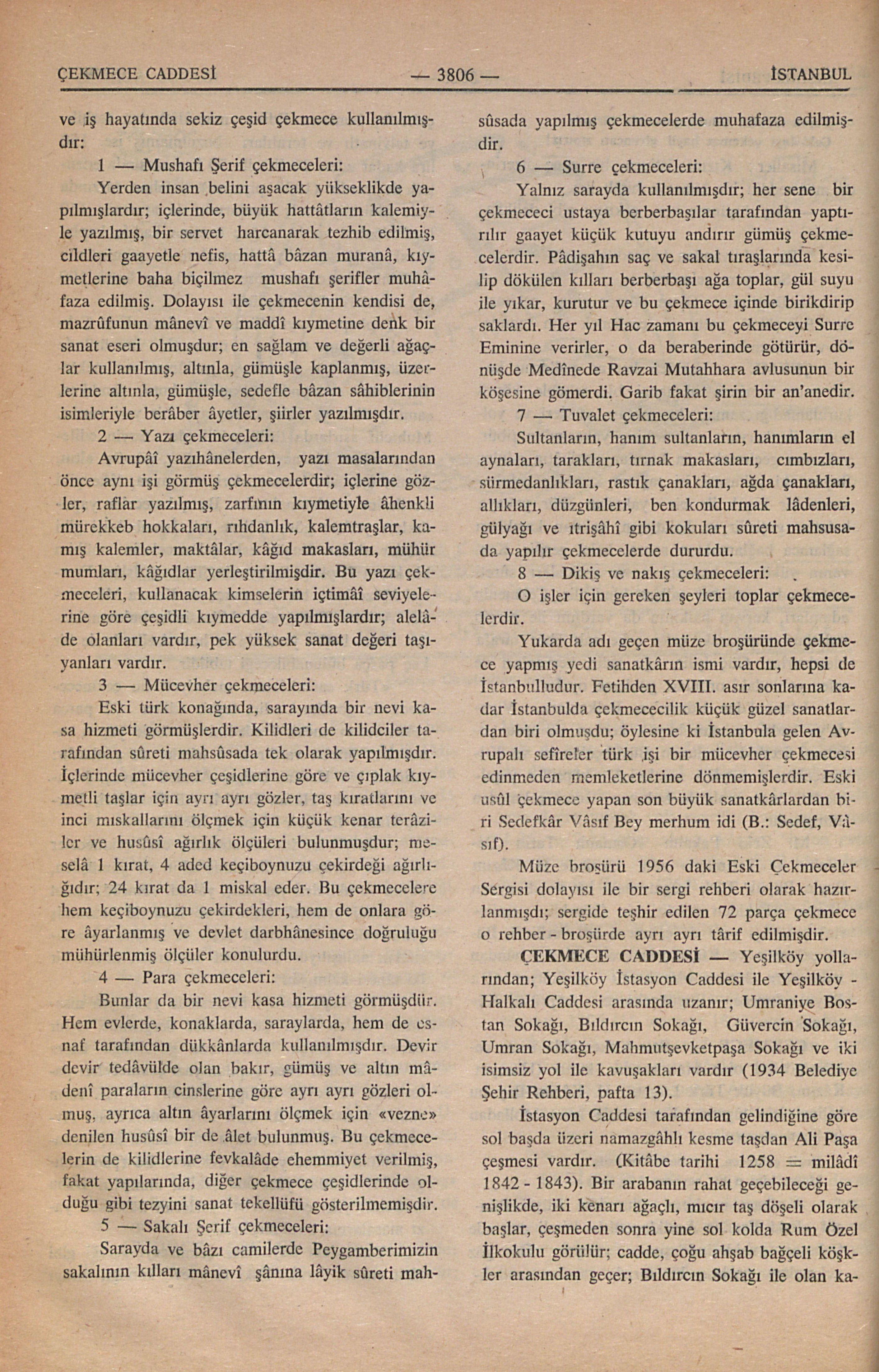 Yukarda adı geçen müze broşüründe çekmece yapmış yedi sanatkârın ismi vardır, hepsi de İstanbulludur. Fetihden XVIII. asır sonlarına kadar İstanbulda çekmececilik küçük güzel sanatlardan biri olmuşdu; öylesine di İstanbula gelen Avrupalı sefireler türk işi bir mücevher çekmecesi edinmeden memleketlerine dönmemişlerdir. Eski usûl çekmece yapan son büyük sanatkârlardan biri Sedefkâr Vâsıf Bey merhum idi (B.: Sedef, Vâsıf).