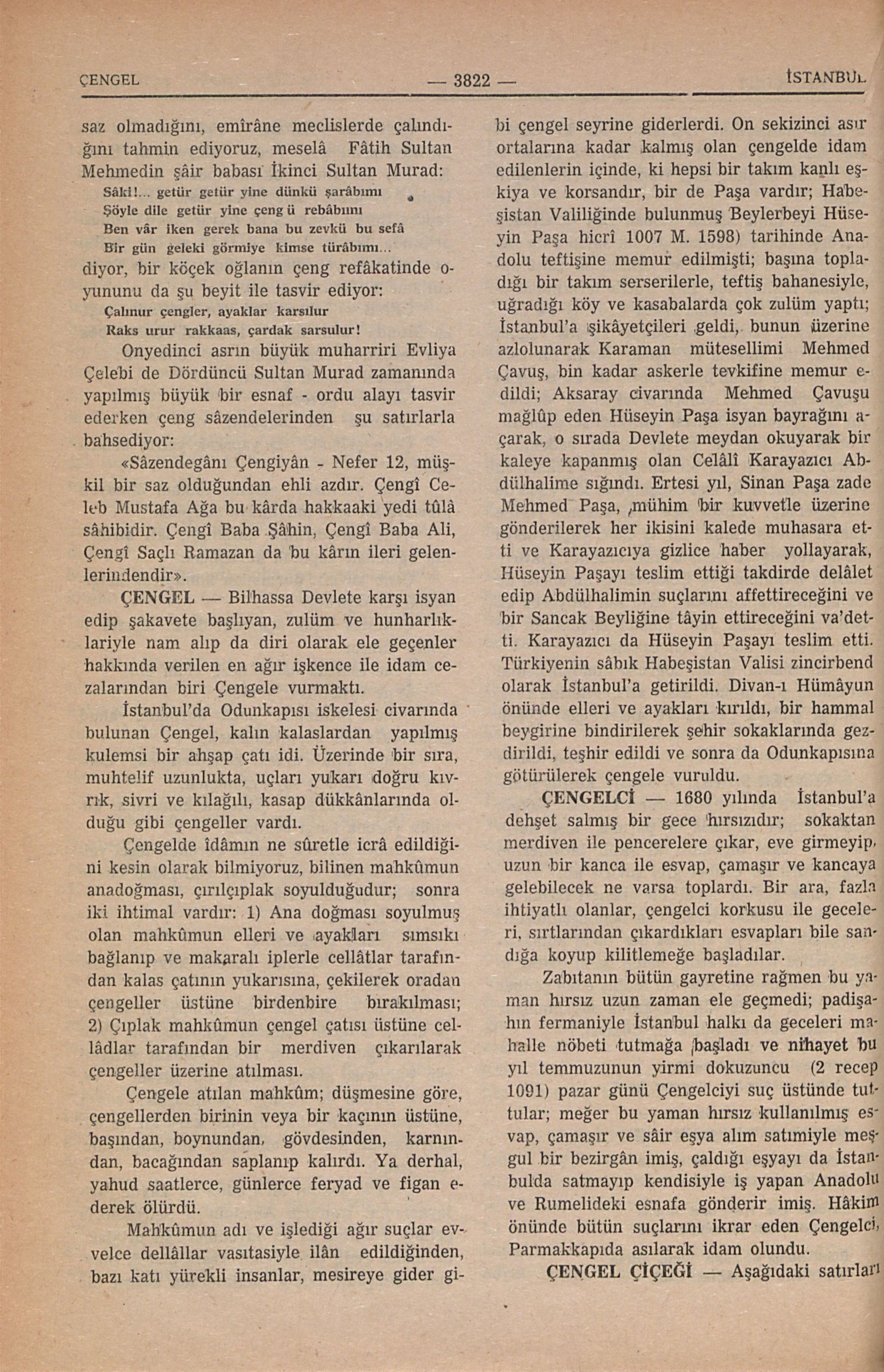 Bilhassa Devlete karşı isyan edip şakavete başlıyan, zulüm ve hunharlıklariyle nam alıp da diri olarak ele geçenler hakkında verilen en ağır işkence ile idam cezalarından biri Çengele vurmaktı.