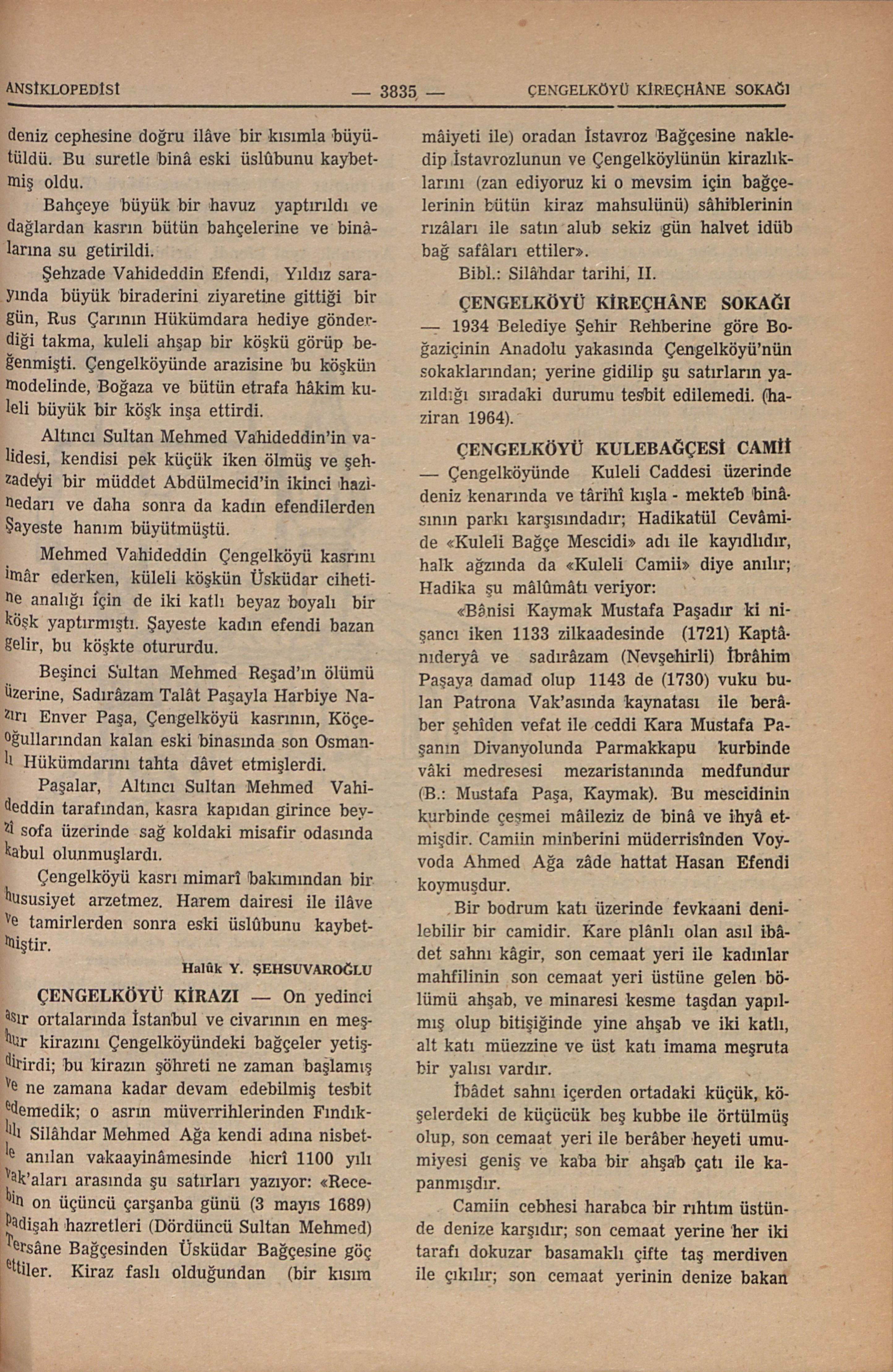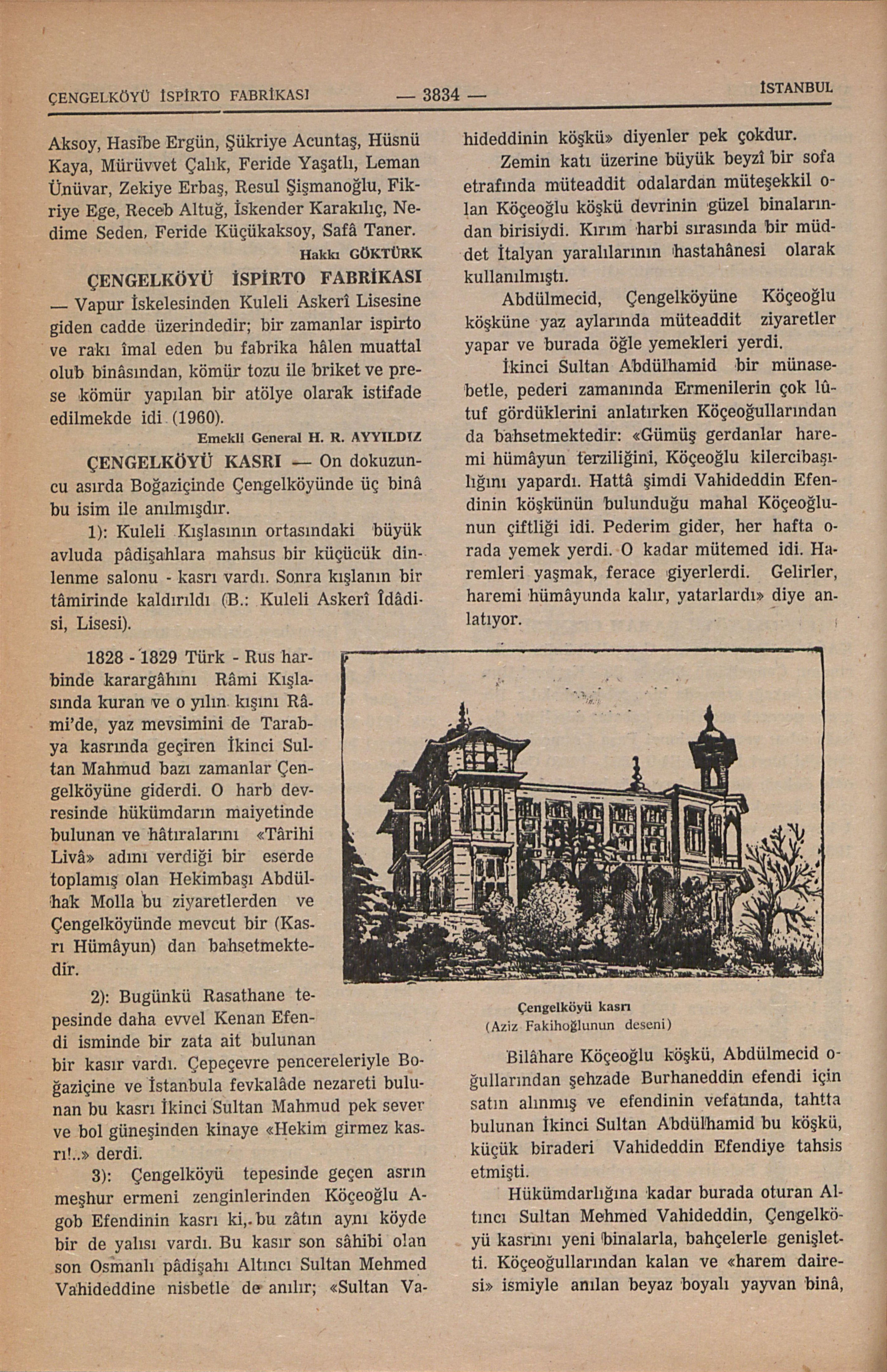 3): Çengelköyü tepesinde geçen asrın meşhur ermeni zenginlerinden Köçeoğlu Agop Efendinin kasrı ki, bu zâtın aynı köyde bir de yalısı vardı. Bu kasır son sâhibi olan son Osmanlı pâdişahı Altıncı Sultan Mehmed Vahideddine nisbetle de anılır; “Sultan Vahideddin köşkü” diyenler pek çokdur.