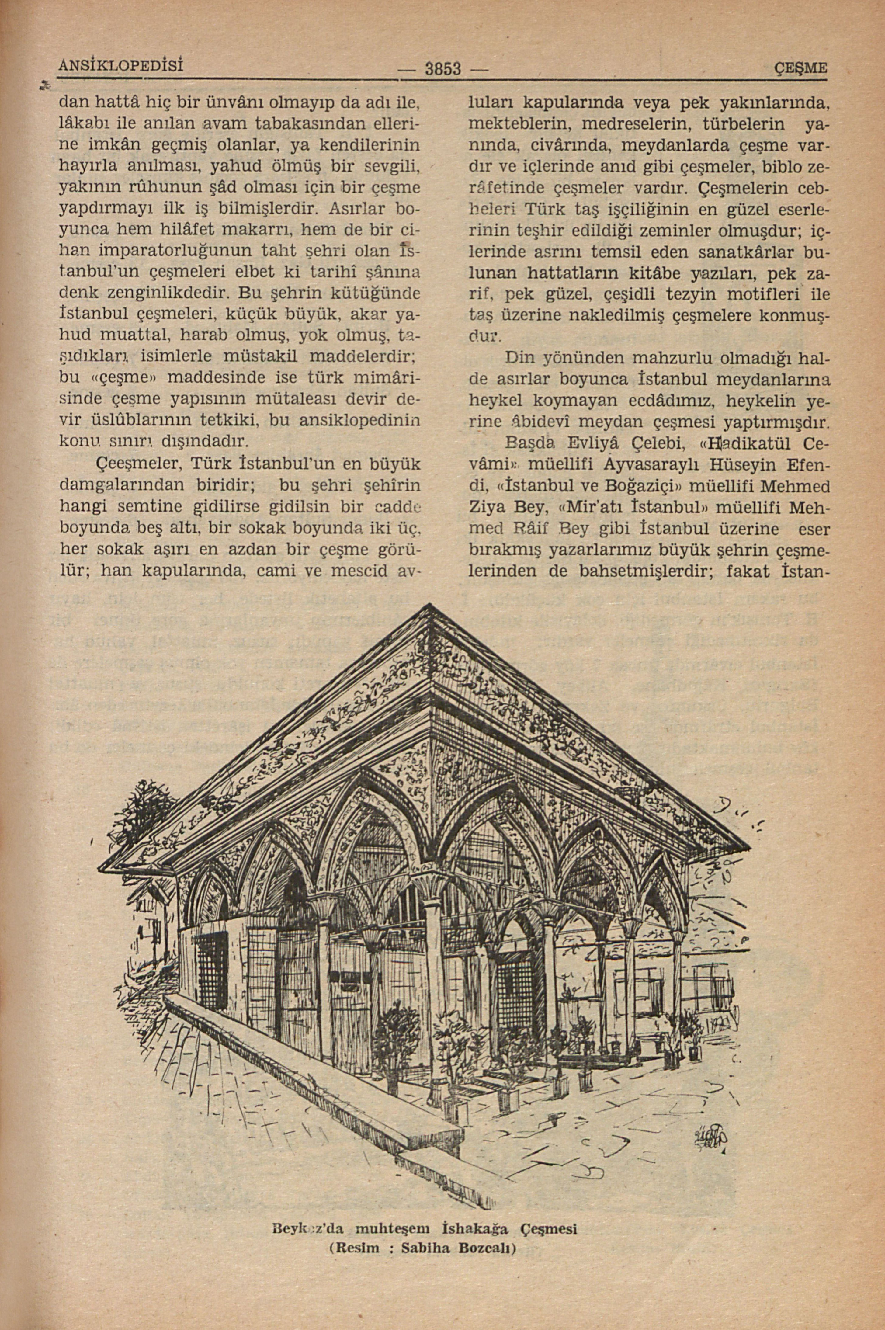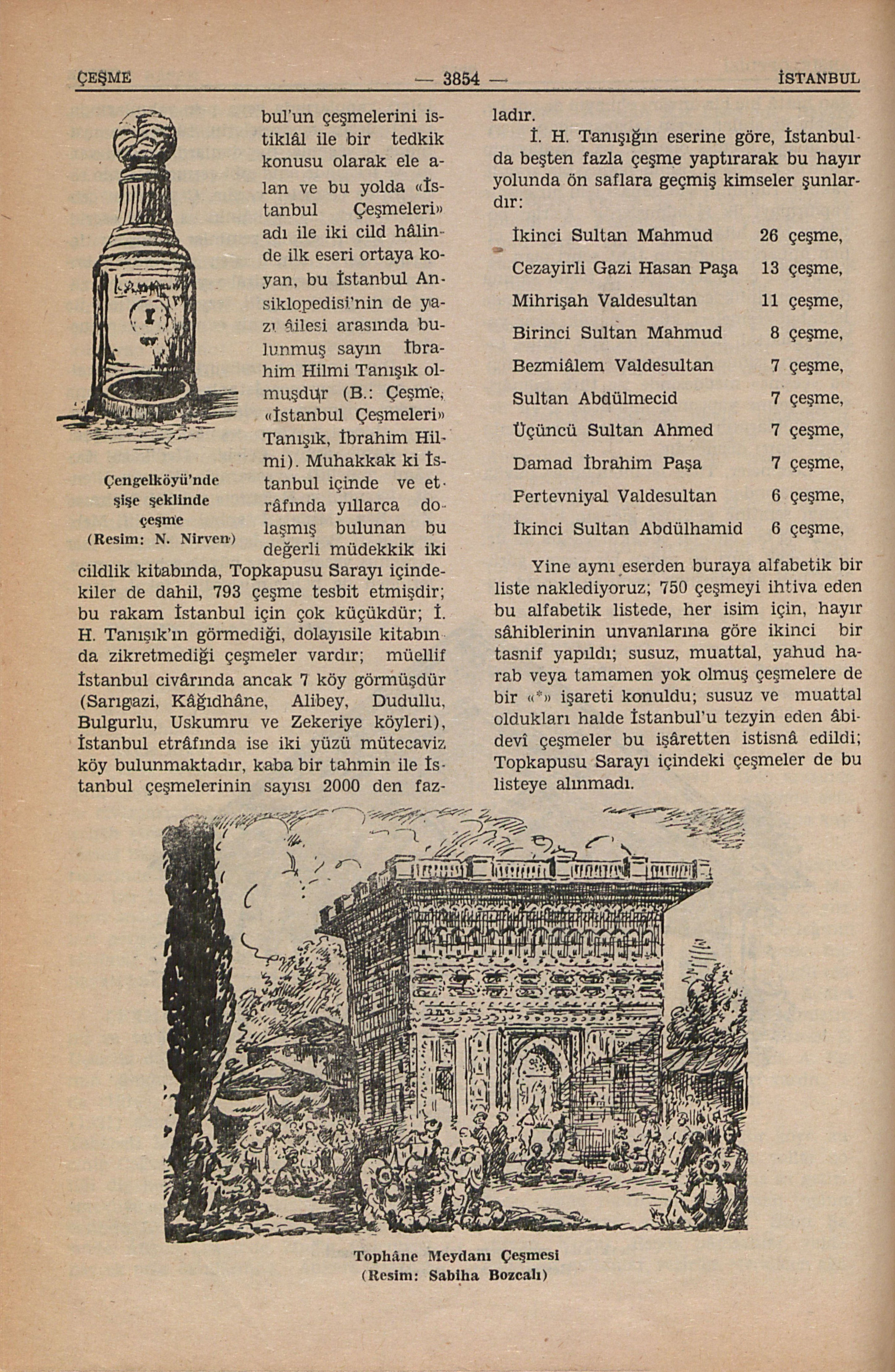B.: Sebil, Şadırvan, Kuyu; B.: Çeşme, “İstanbul Çeşmeleri” Tanışık, İbrahim Hilmi