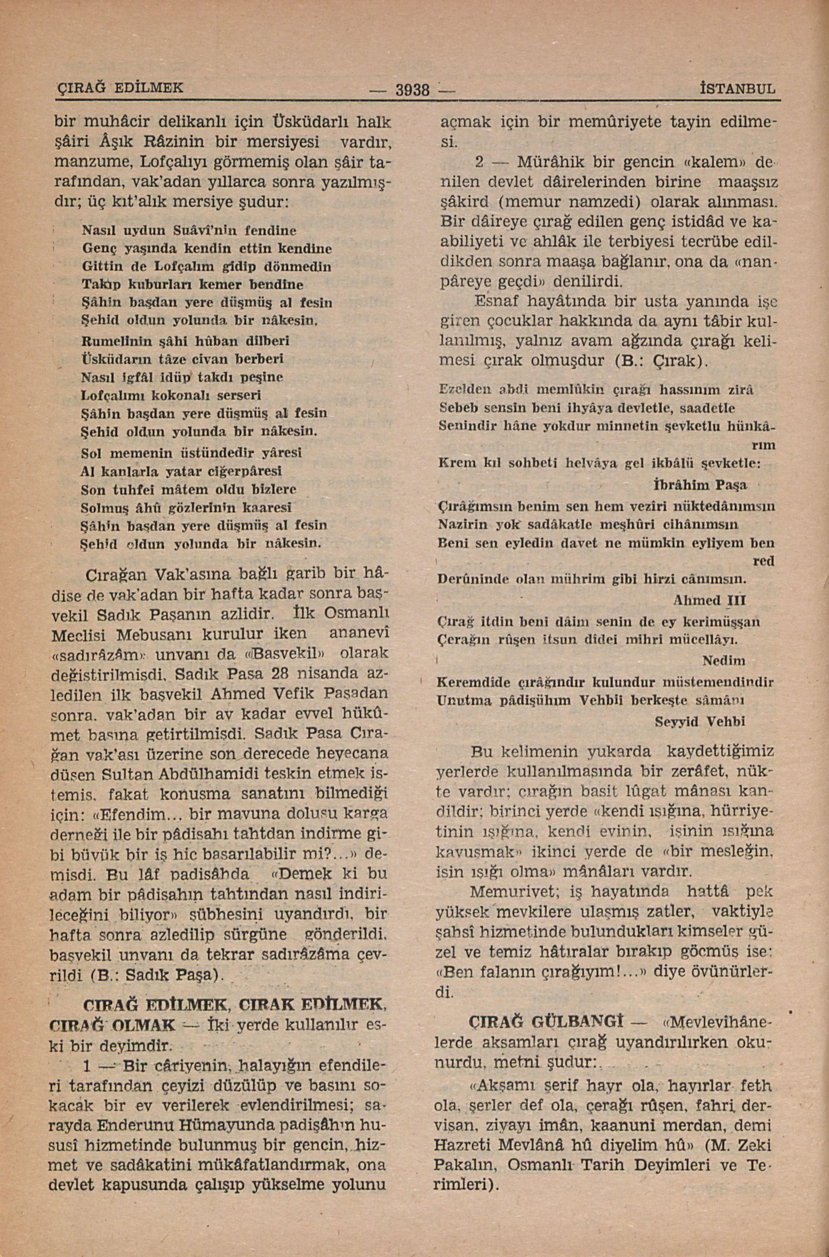 Bu kelimenin yukarda kaydettiğimiz yerlerde kullanılmasında bir zerâfet, nükte vardır; çırağın basit lgat mânâsı kandildir, birinci yerde “kendi ışığına hurriyetinin ışığına, kendi evinin, işinin ışığına kavuşmak” ikinci yerde de “bir mesleğin işin ışığı olma” mânâları vardır.