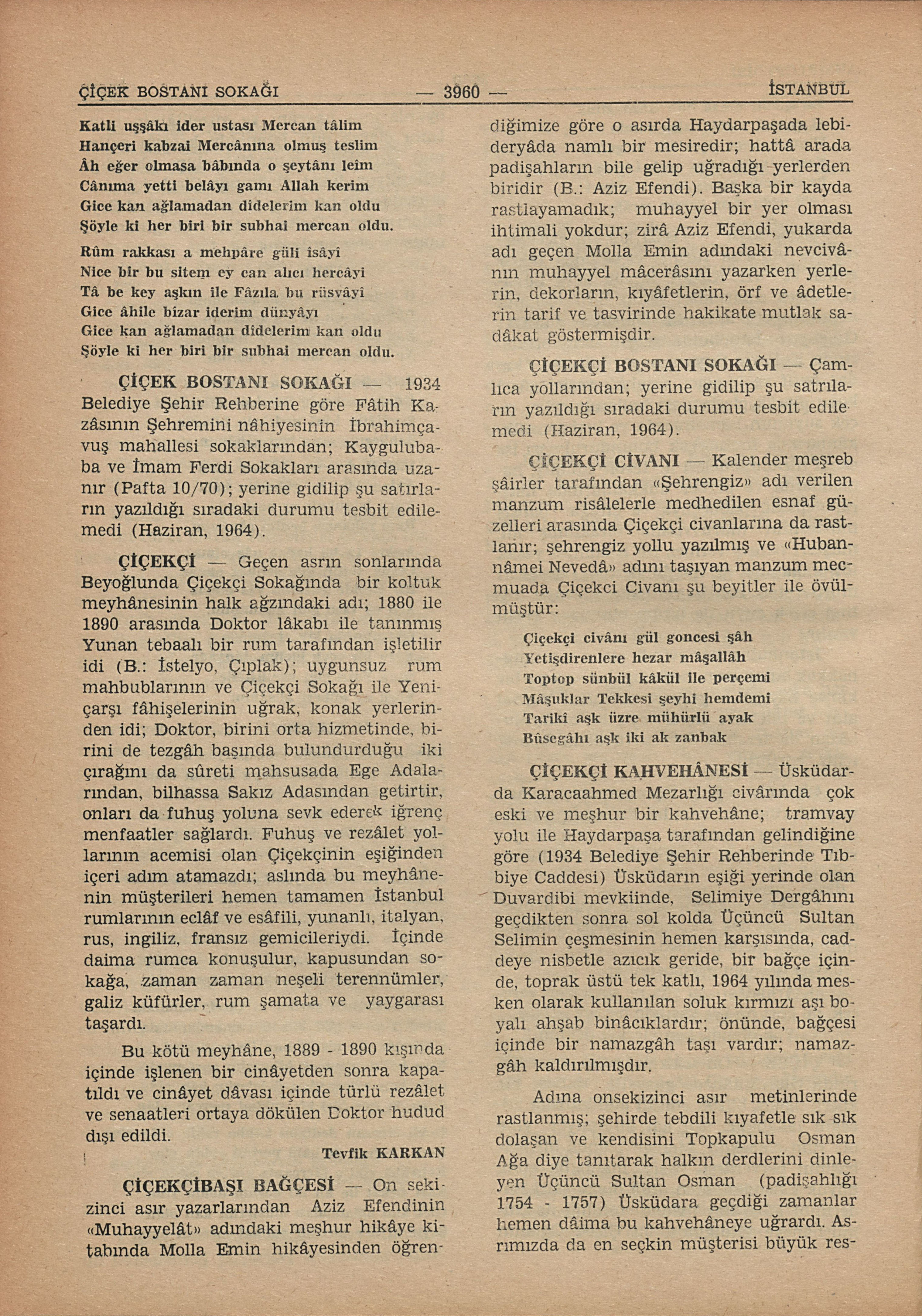 Çiçekçi Kahvehânesinin çırak Cemili için söylenmiş şu ayaklı mânilerle kıt’a Merdivenköylü Tevfik Karkan’ındır: