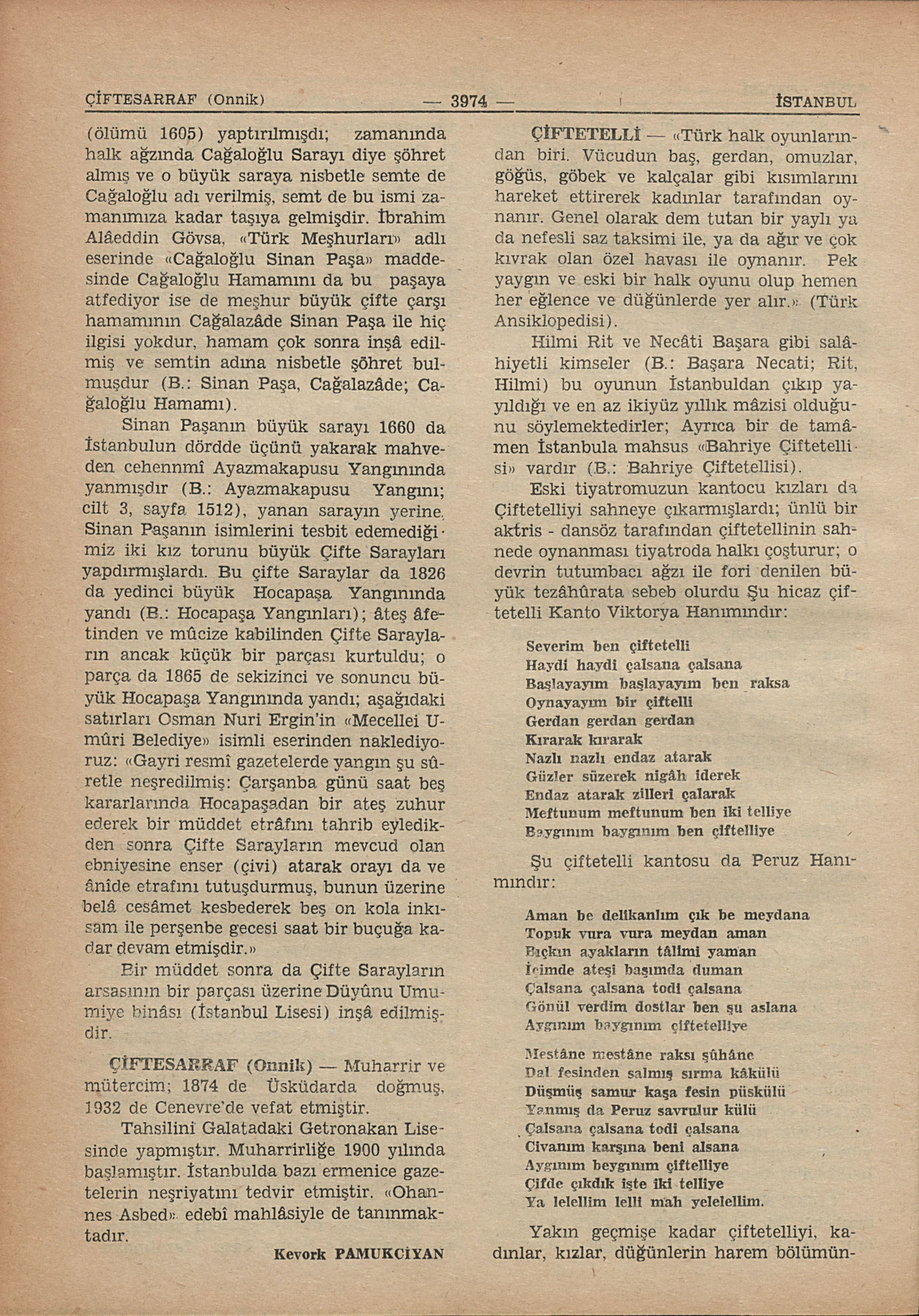 B.: Sinan Paşa, Cağalazâde; Cağaloğlu Hamamı; B.: Ayazmakapusu Yangınında yanmışdır B.: Ayazmakapus Yangını; cilt 3, sayfa 1512; B.: Hocapaşa Yangınları