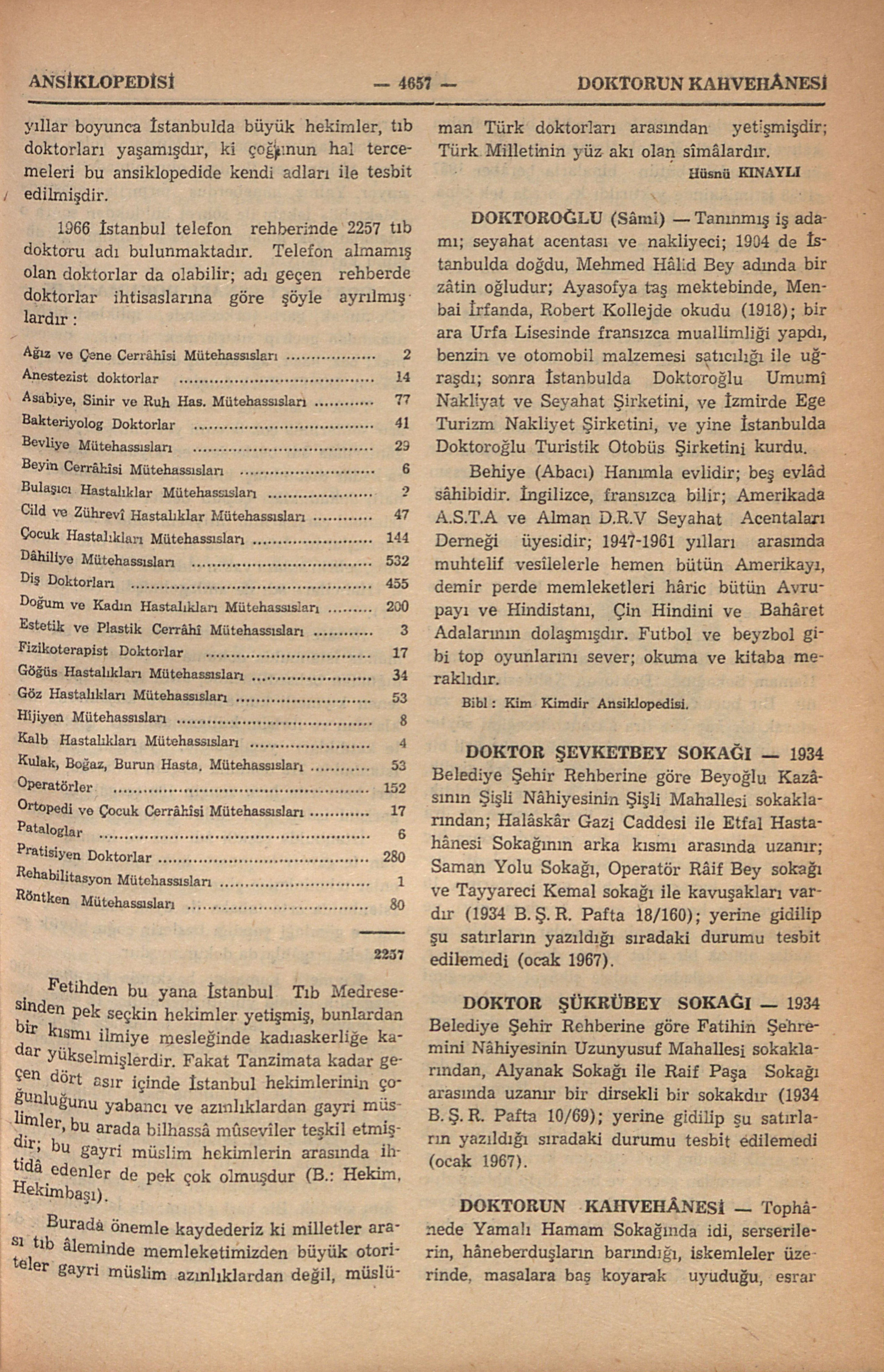 Tophânede Yamalı Hamam Sokağında idi, serserilerin, hâneberduşların barındığı, iskemleler üzerinde, masalara baş koyarak uyuduğu, esrar dalgası içinde kendinden geçdiği bir sabahcı kahvehânesiydi; Yamalı Hamam da dahil, o sokak üzerindeki bütün binalarla berâber 1957-1958 istimlâkinde yıktırıldı ki, orada tek binâ, Karabaş Mescidi kalmışdır. Kahveci Doktorun asıl adını tesbit edemedik, “Doktor” lâkabı halden anlar adam anlamında takılmış olacakdır. “Mektebli” lakabı ile anılan Mustafa Tolga adındaki hâneberduş bir genc bize tevdi ettiği acı hatıra - itirafnamesinde (İstanbulun akıl ile idrâki imkansız ve tahayyül sınırı dışında vekaayı ile dolu üç büyük îtirafnâmeden biri; B.: Pazvand, A; Oflaz, Orhan; Tolga Mustafa) bu kahvehâneden bahsediyor, aşağıdaki satırlar 100 sayfayı aşkın bir bendin içinden alınmışdır : “...Sınıfda kalırsam babam beni eve almayacağına yemin etmişdi, karnemi alıp da sınıfda kaldığımı görünce eve gidemedim. 1943 yılı, 17 yaşındayım, cebimde 1,5 liram vardı; gece yarısına kadar Beyoğlunda serseri dolaşdığım, sonra Köprü altında gecelemeye karar vererek Boğazkesenden aşağı inerken karşıma benden kabaca bir serserî genc çıkdı, durumumu anlattım, beni Yamalı Hamam Sokağında Doktorun Kahvesine götürdü. Bir buçuk liram olduğunu öğrenince zar atarak bir kaç yüz l...