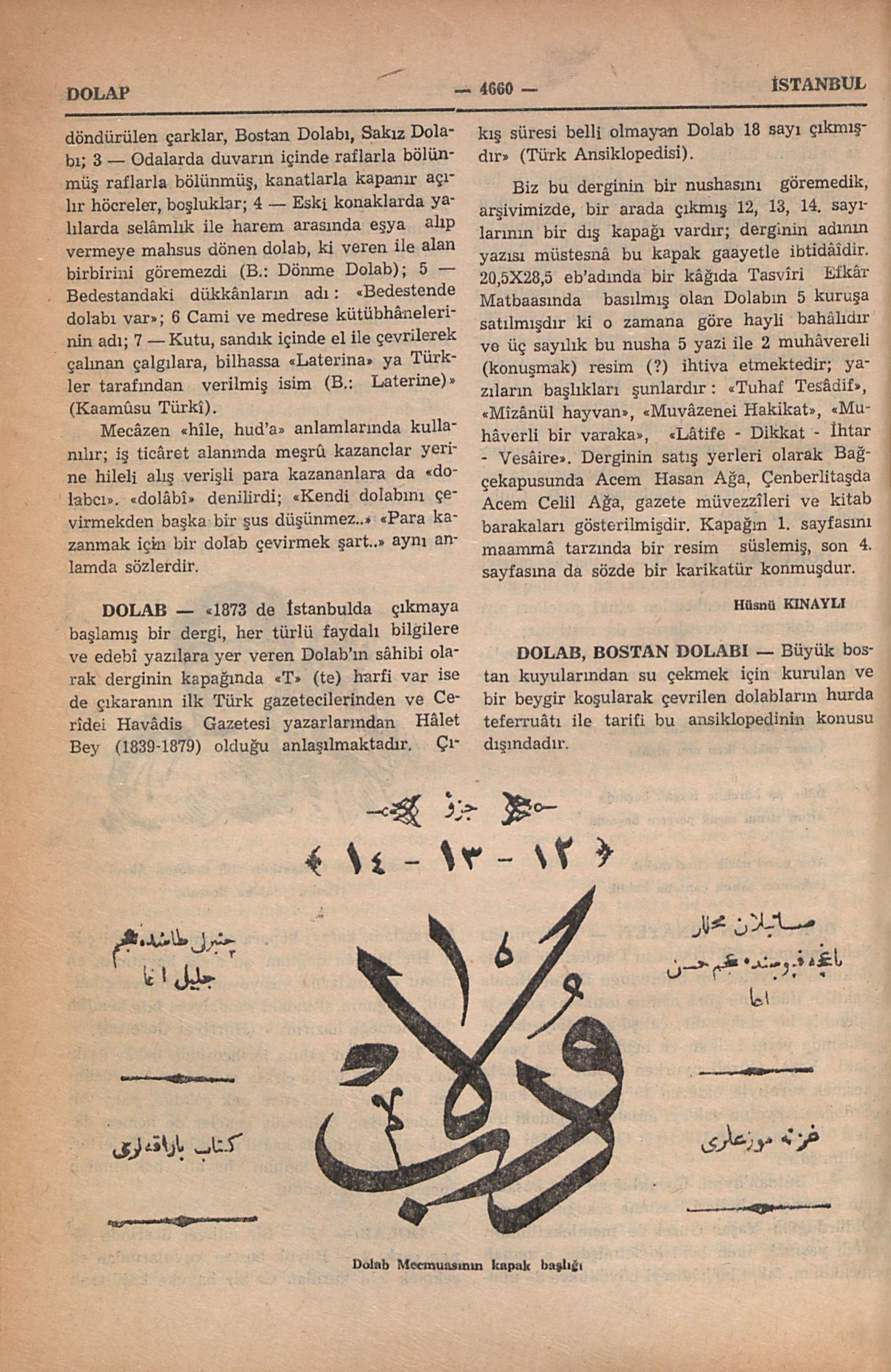 Büyük bostan kuyularından su çekmek için kurulan ve bir beygir koşularak çevrilen dolabların hurda teferruâtı ile tarifi bu ansiklopedinin konusu dışındadır.