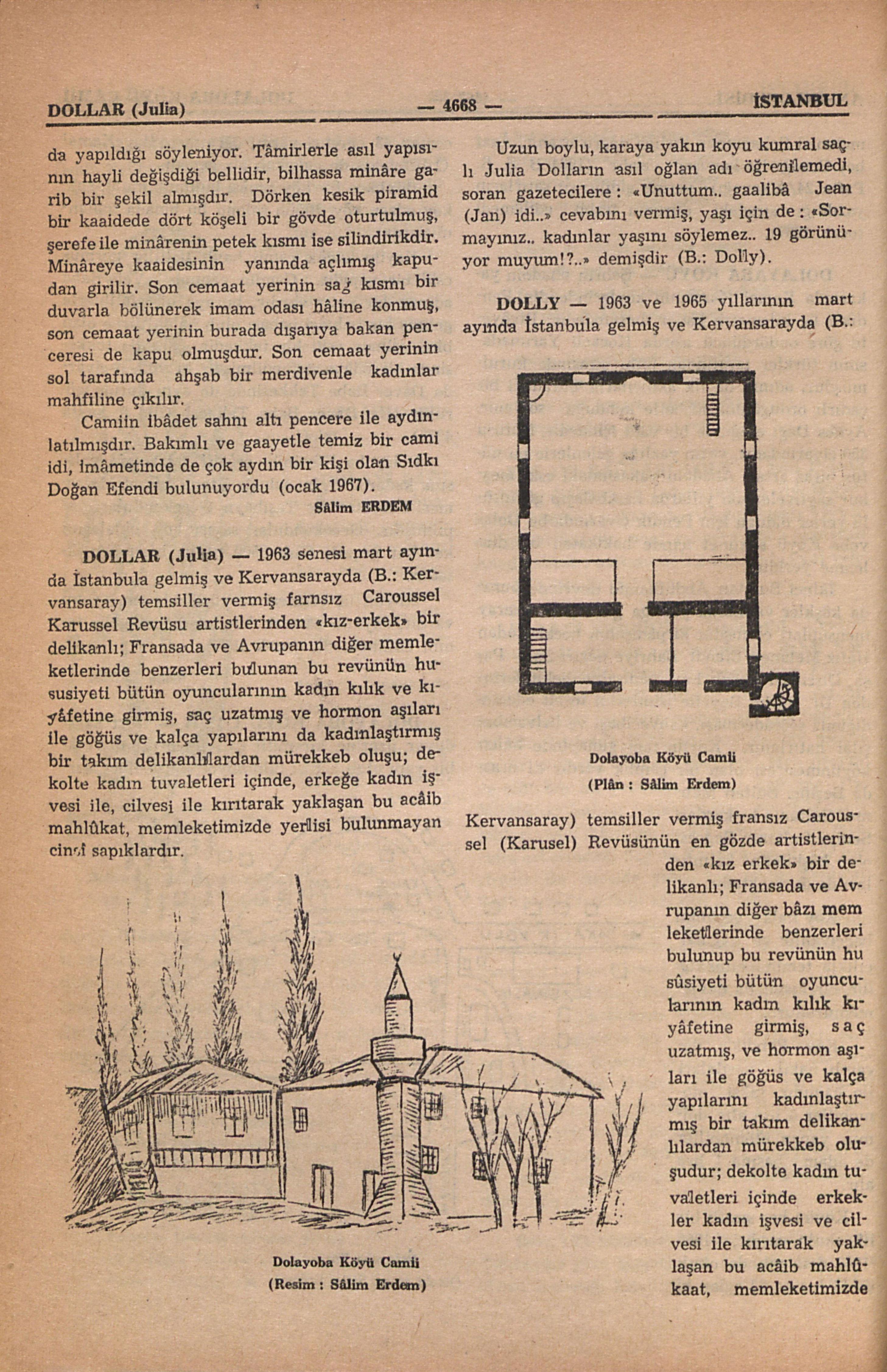1963 ve 1965 yıllarının mart ayında İstanbula gelmiş ve Kervansarayda (B.: Kervansaray) temsiller vermiş fransız Caroussel (Karusel) Revüsünün en gözde artistlerinden “kız erkek” bir delikanlı; Fransada ve Avrupanın diğer bâzı memleketlerinde benzerleri bulunup bu revünün husûsiyeti bütün oyuncularının kadın kılık kıyâfetine girmiş, saç uzatmış, ve hormon aşıları ile göğüs ve kalça yapılarını kadınlaştırmış bir takım delikanlılardan mürekkeb oluşudur; dekolte kadın tuvaletleri içinde erkekler kadın işvesi ve cilvesi ile kırıtarak yaklaşan bu acâib mahlûkaat, memleketimizde henüz yerlisi bulunmayan cinsî sapıklardır.