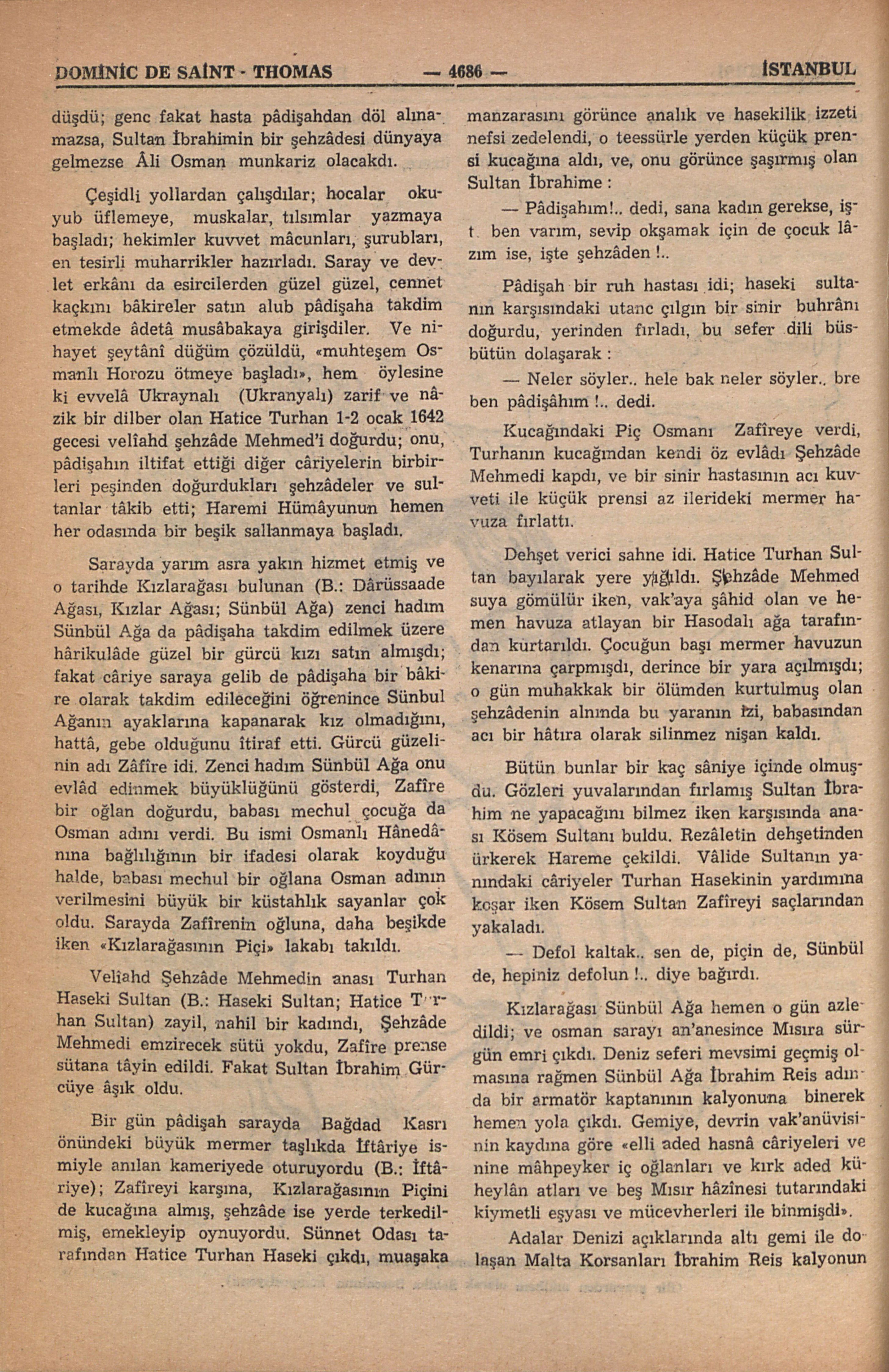 Pâdişah bir ruh hastası idi; haseki sultanın karşısındaki utanc çılgın bir sinir buhrânı doğurdu, yerinden fırladı, bu sefer dili büsbütün dolaşarak :