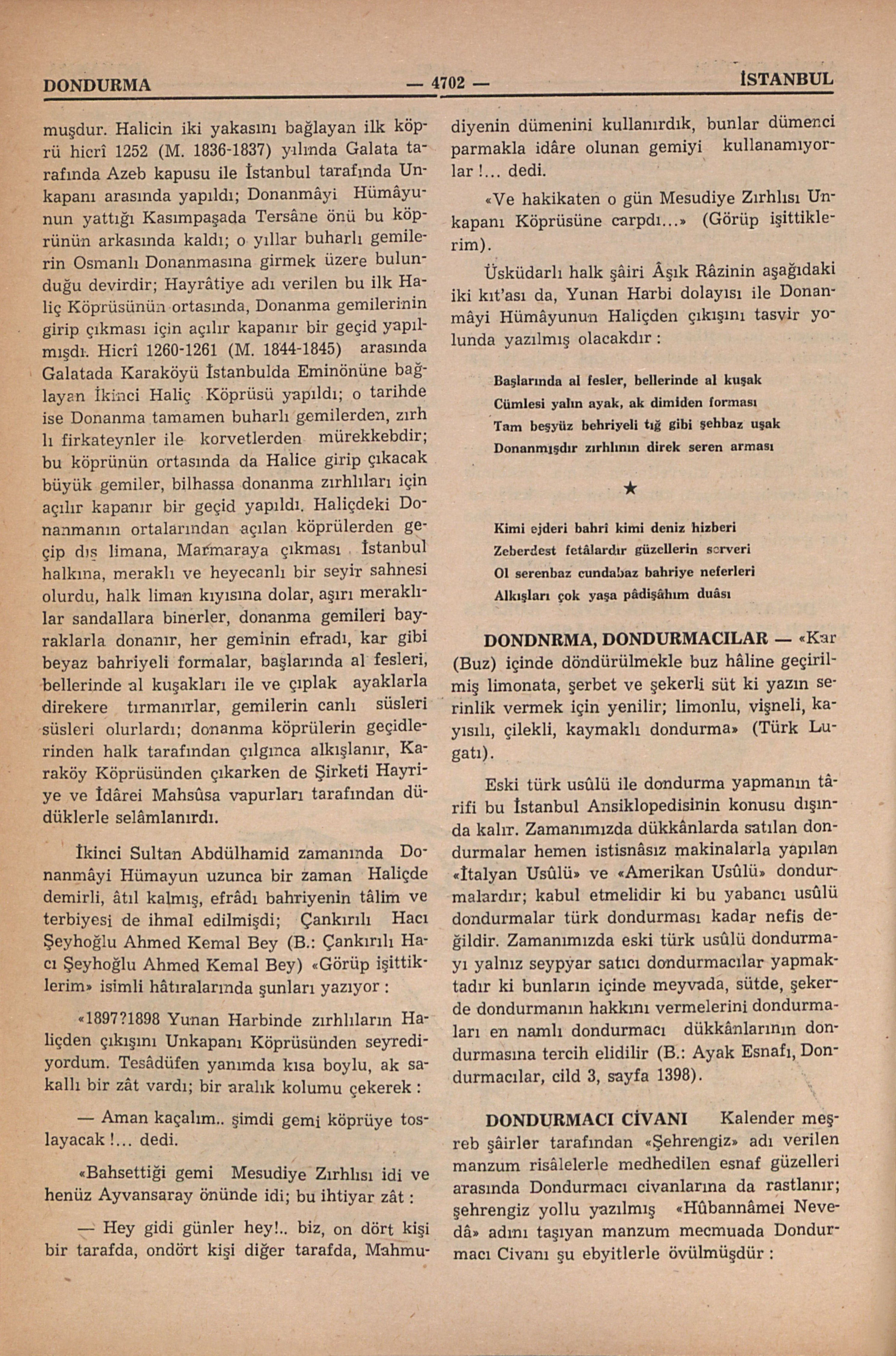 Kalender meşreb şâirler tarafından “Şehrengiz” adı verilen manzum risâlelerle medhedilen esnaf güzelleri arasında Dondurmacı civanlarına da rastlanır; şehrengiz yollu yazılmış “Hûbannâmei Nevedâ” adını taşıyan manzum mecmuada Dondurmacı Civanı şu ebyitlerle övülmüşdür :