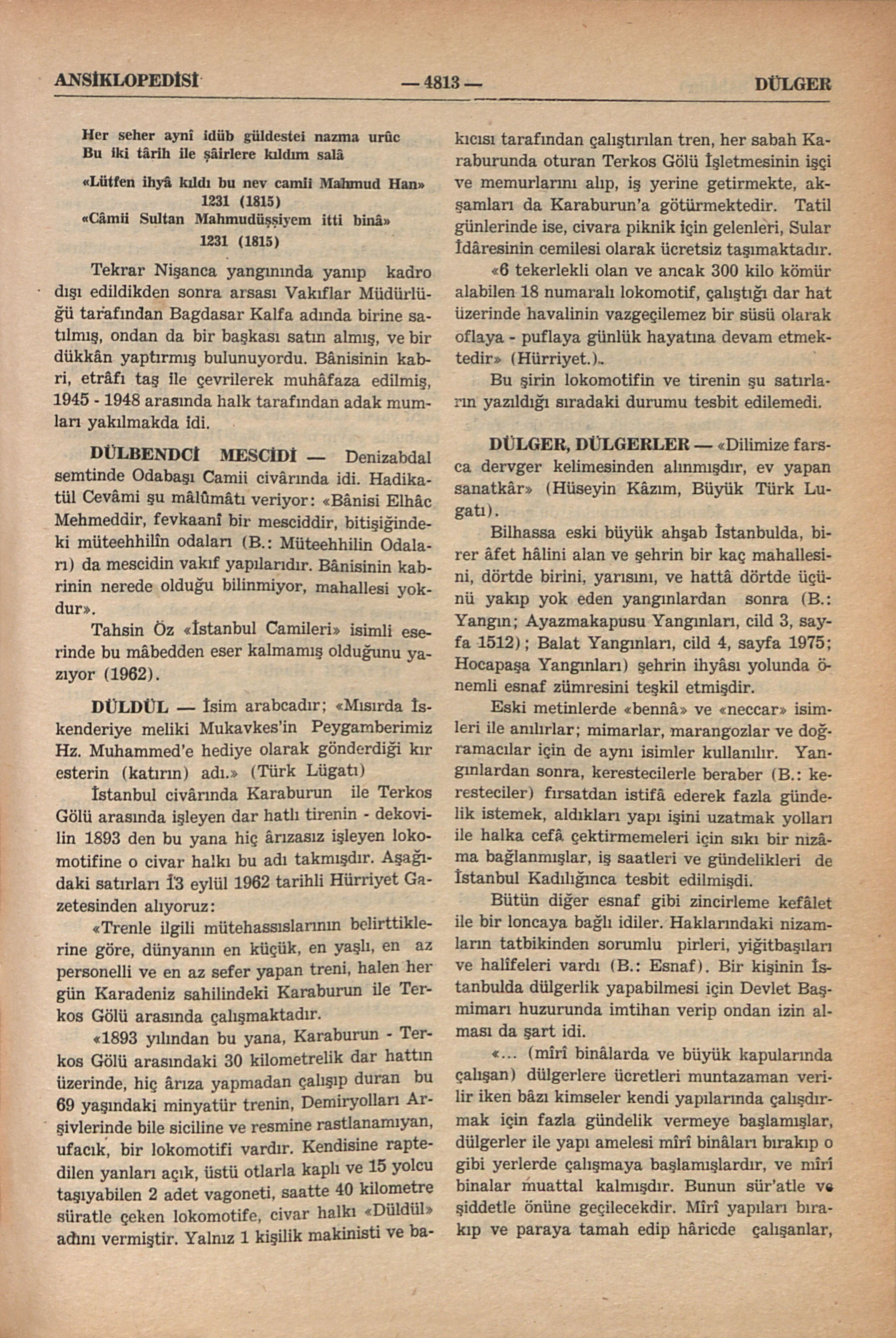 “... (mîrî binâlarda ve büyük kapularında çalışan) dülgerlere ücretleri muntazaman verilir iken bâzı kimseler kendi yapılarında çalışdı...