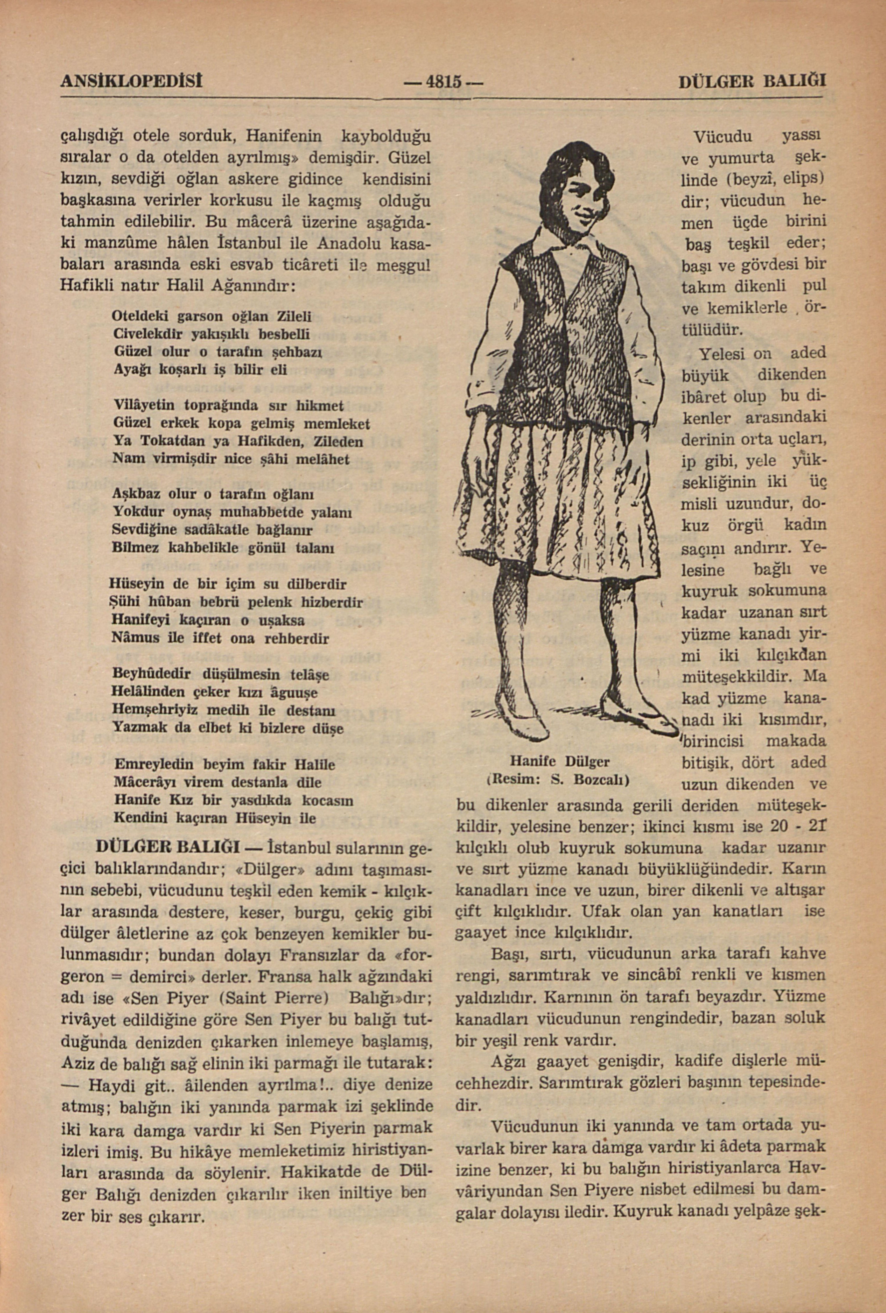 16 yaşında zarif yapılı ve güzel yüzlü Hanife Dülger Küçükçekmecede bir kulübemsi evde oturan Mehmed adında bir kundura boyacısının kızıdır, anası da İstanbul’da hizmetcilik yapmakdadır. Ana baba, Hanifeyi akrânı kızlar gibi giydirip gezdirememenin acısını duymaktadırlar. Kendi giyim kuşam ihtiyaçlarını temin yolunda Hanife Küçükçekmecede bir iş bulmuşdur ve uzunca bir müddet bu işe gidip gelmiş ve 1967 nisanında bir akşam evine dönmemişdir. Babası gazetecilere şunları anlatmışdır. “Polis izini bulamadı, biz bâzı şeyler duyduk, bildirdik ama ilgilenen olmadı; Hanife garsonluk yapan bir gençle sevişiyormuş; oğlan askerliğini yapdıkdan sonra evlenmeye karar vermişler; oğlanın adını da öğrendik, Tokadın Zile nahiyesinden Hüseyin Yılmaz, çalışdığı otele sorduk, Hanifenin kaybolduğu sıralar o da otelden ayrılmış” demişdir. Güzel kızın, sevdiği oğlan askere gidince kendisini başkasına verirler korkusu ile kaçmış olduğu tahmin edilebilir. Bu mâcerâ üzerine aşağıdaki manzûme hâlen İstanbul ile Anadolu kasabaları arasında eski esvab ticâreti ile meşgul Hafikli natır Halil Ağanındır: