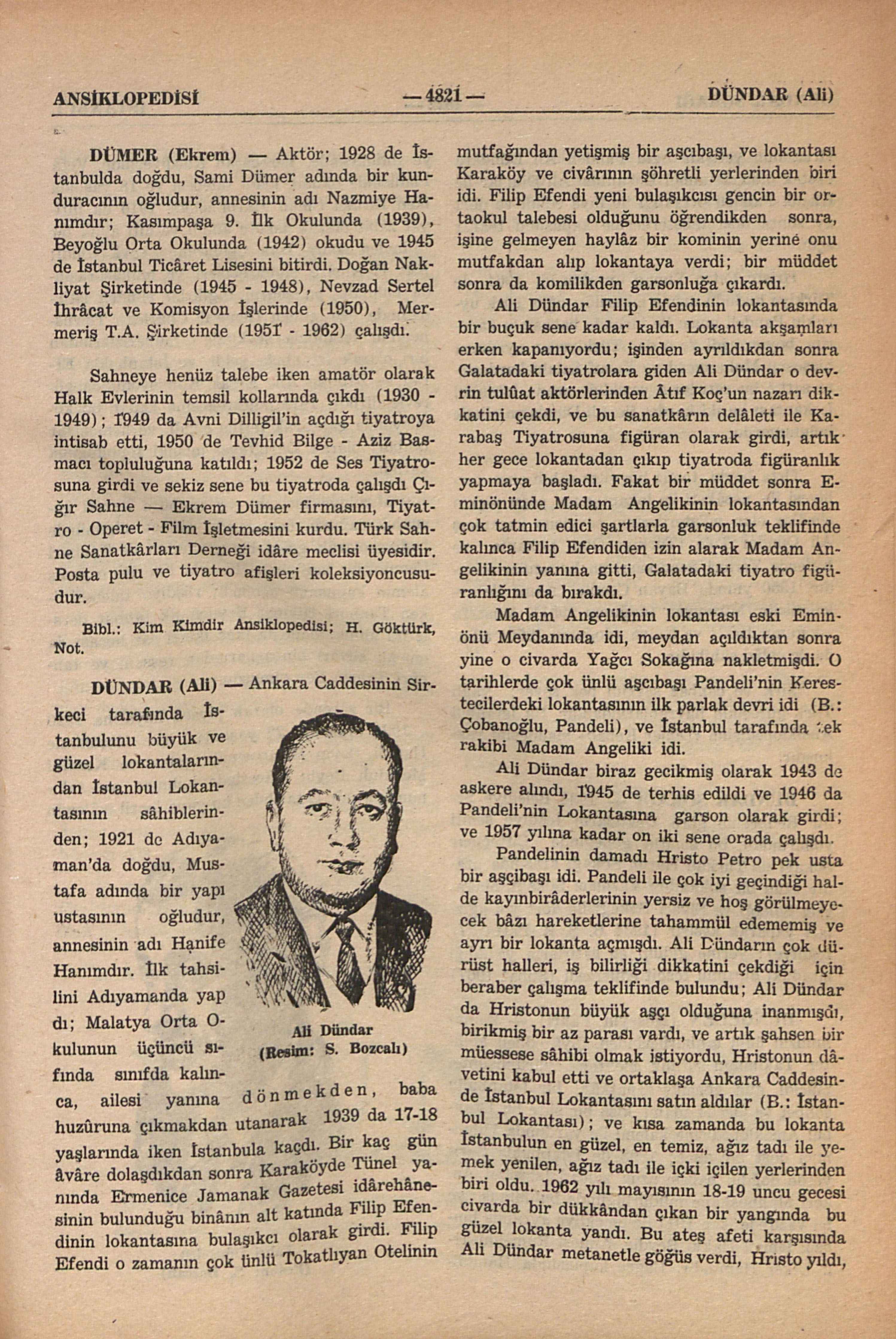 Ankara Caddesinin Sirkeci tarafında İstanbulunu büyük ve güzel lokantalarından İstanbul Lokantasının sâhiblerinden; 1921 de Adıyaman’da doğdu, Mustafa adında bir yapı ustasının oğludur, annesinin adı Hanife Hanımdır. İlk tahsilini Adıyamanda yapdı; Malatya Orta Okulunun üçüncü sınıfında sınıfda kalınca, ailesi yanına dönmekden, baba huzûruna çıkmakdan utanarak 1939 da 17-18 yaşlarında iken İstanbula kaçdı. Bir kaç gün âvâre dolaşdıkdan sonra Karaköyde Tünel yanında Ermenice Jamanak Gazetesi idârehânesinin bulunduğu binânın alt katında Filip Efendinin lokantasına bulaşıkcı olarak girdi. Filip Efendi o zamanın çok ünlü Tokatlıyan Otelinin mutfağından yetişmiş bir aşcıbaşı, ve lokantası Karaköy ve civârının şöhretli yerlerinden biri idi. Filip Efendi yeni bulaşıkcısı gencin bir ortaokul talebesi olduğunu öğrendikden sonra, işine gelmeyen haylâz bir kominin yerine onu mutfakdan alıp lokantaya verdi; bir müddet sonra da komilikden garsonluğa çıkardı.