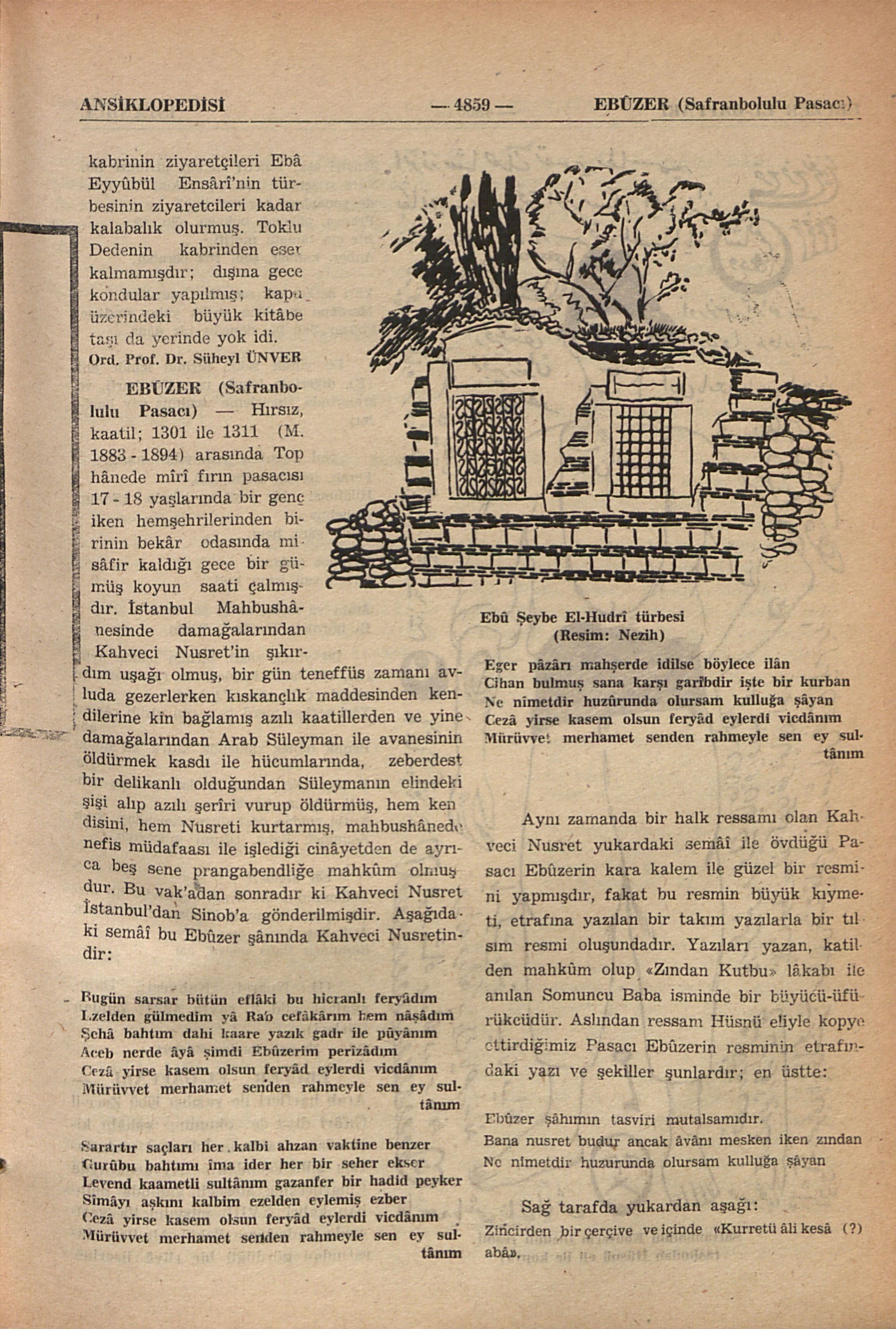 Aynı zamanda bir halk ressamı olan Kahveci Nusret yukardaki semâî ile övdüğü Pasacı Ebûzerin kara kalem ile güzel bir resmini yapmışdır, fakat bu resmin büyük kıymeti, etrafına yazılan bir takım yazılarla bir tılsım resmi oluşundadır. Yazıları yazan, katilden mahkûm olup “Zından Kutbu” lâkabı ile anılan Somuncu Baba isminde bir büyücü-üfürükcüdür. Aslından ressam Hüsnü eliyle kopye ettirdiğimiz Pasacı Ebûzerin resminin etrafındaki yazı ve şekiller şunlardır; en üstte;