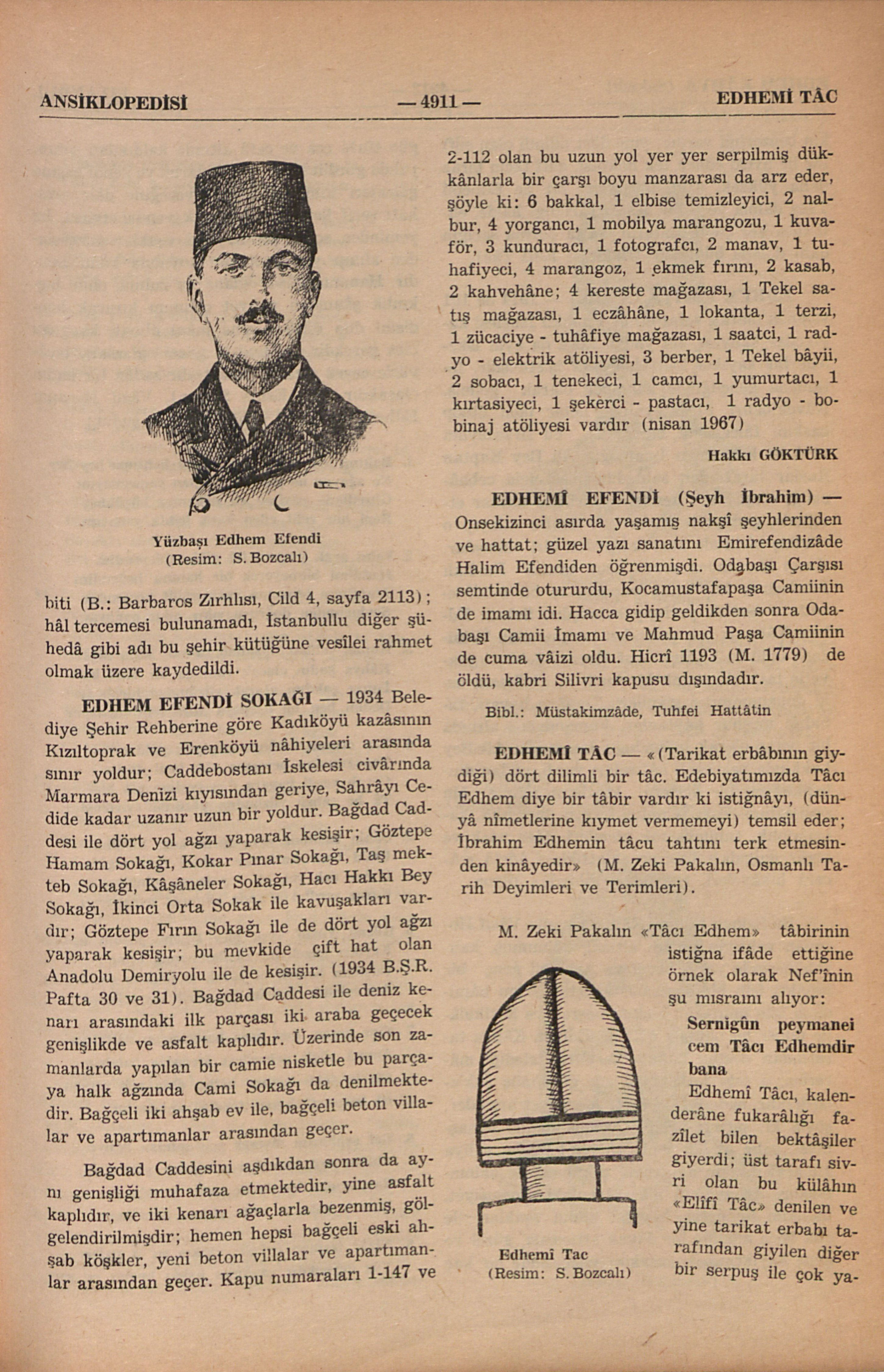 “(Tarikat erbâbının giydiği) dört dilimli bir tâc. Edebiyatımızda Tâcı Edhem diye bir tâbir vardır ki istiğnâyı, (dünyâ nîmetlerine kıymet vermemeyi) temsil eder; İbrahim Edhemin tâcu tahtını terk etmesinden kinâyedir” (M. Zeki Pakalın, Osmanlı Tarih Deyimleri ve Terimleri).