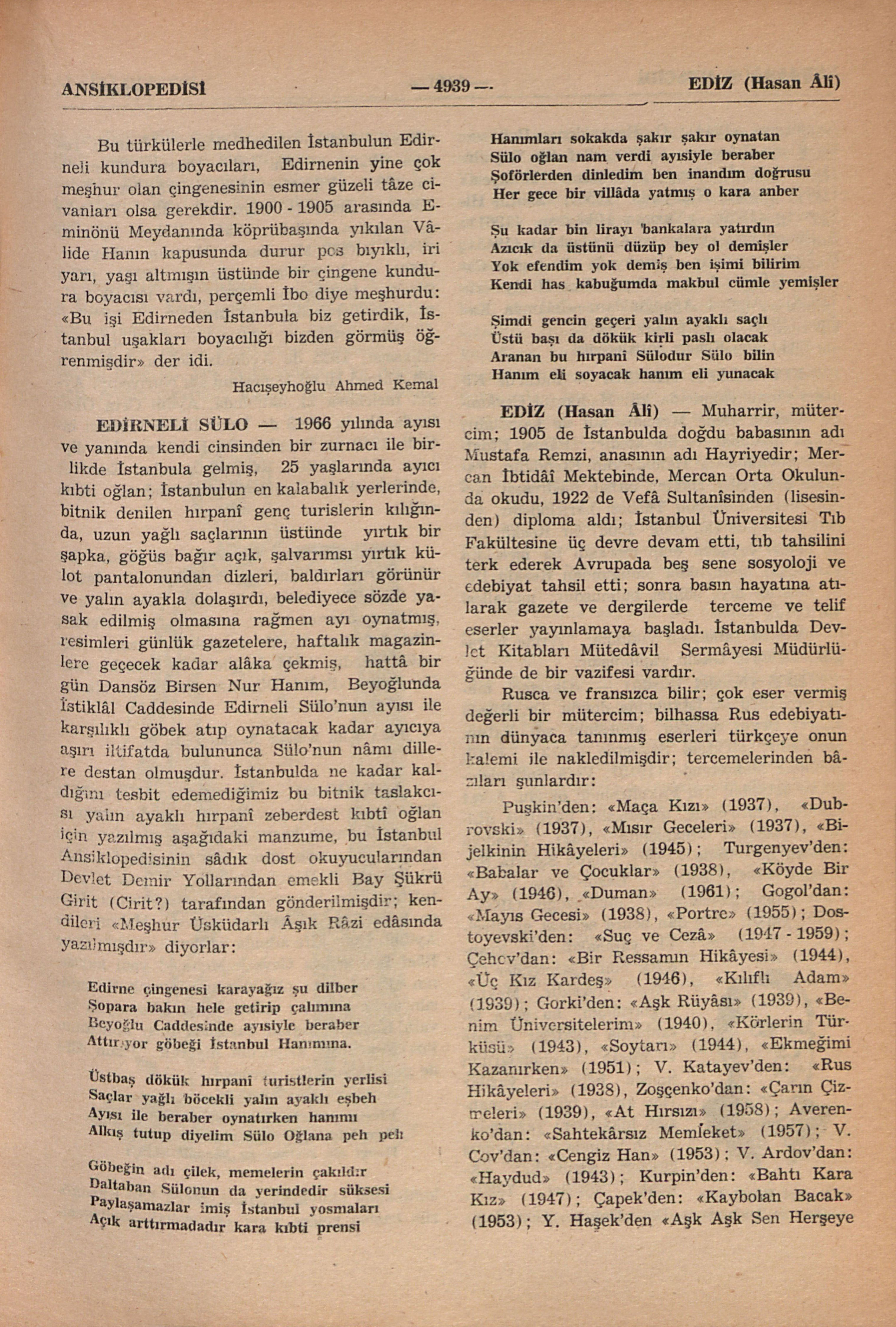 Bu türkülerle medhedilen İstanbulun Edirneli kundura boyacıları, Edirnenin yine çok meşhur olan çingenesinin esmer güzel tâze civanları olsa gerekdir. 1900 - 1905 arasında Eminönü Meydanında köprübaşında yıkılan Vâlide Hanın kapusunda durur pos bıyıklı, iri yarı, yaşı altmışın üstünde bir çingene kundura boyacısı vardı, perçemli İbo diye meşhurdu: “Bu işi Edirneden İstanbula biz getirdik, İstanbul uşakları boyacılığı bizden görmüş öğrenmişdir” der idi.