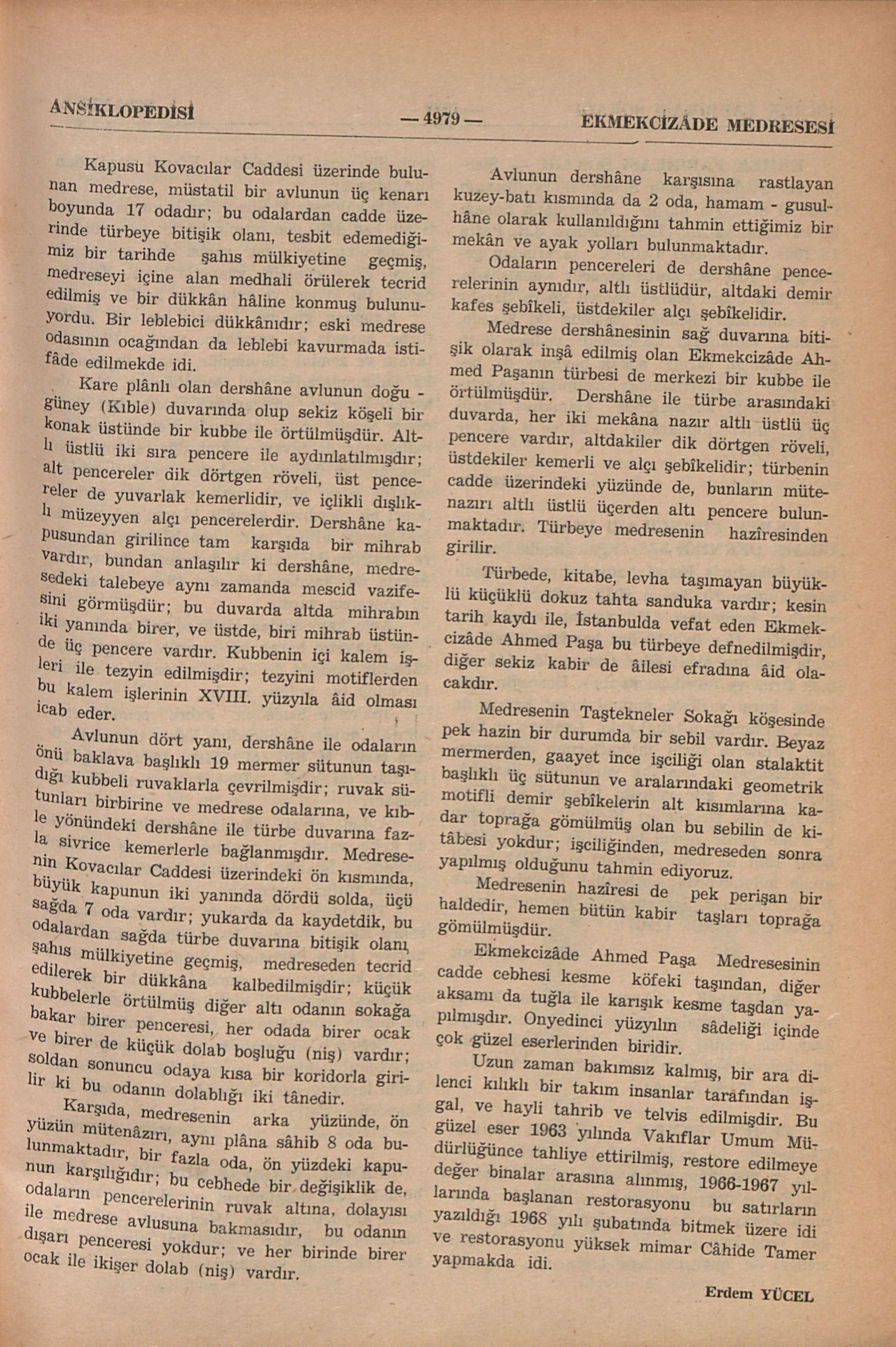EKMEKCİZÂDE AHMED PAŞA MEDRESESİ