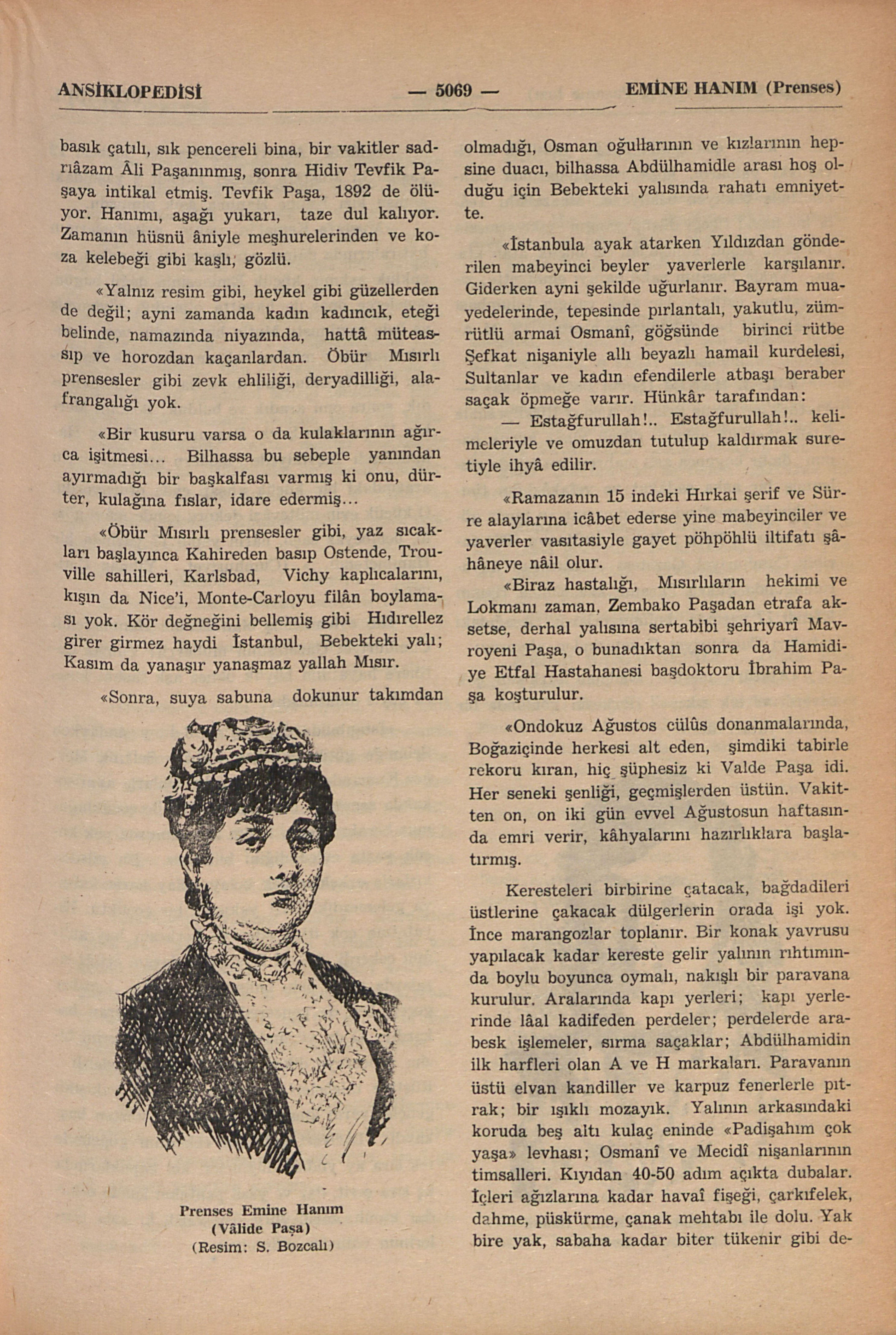 “Vâlide Paşa” unvânı ile meşhurdur; Mısır hidivi Tevfik Paşanın zevcesi, Mısır hidivi Abbas Hilmi Paşanın annesi (B.: Abbas Hilmi Paşa, Hidiv, cild 1, sayfa 14); hal tercemesi elde edilemedi; bir rivayete göre esirci eliyle satılmış bir câriye, bir rivayete göre de İstanbullu çok fakir bir âilenin başına devlet kuşu konmuş güzellikde yektâ kızı idi. Pek saltanatlı bir hayat sürmüş, İstanbula geldiği zaman Bebekdeki muhteşem yalısında oturur, İstanbulun hayranlarından bir hanımefendi idi. Sermed Muhtar Alus bu meşhur prensesin İstanbuldaki hayatını şöyle anlatıyor: