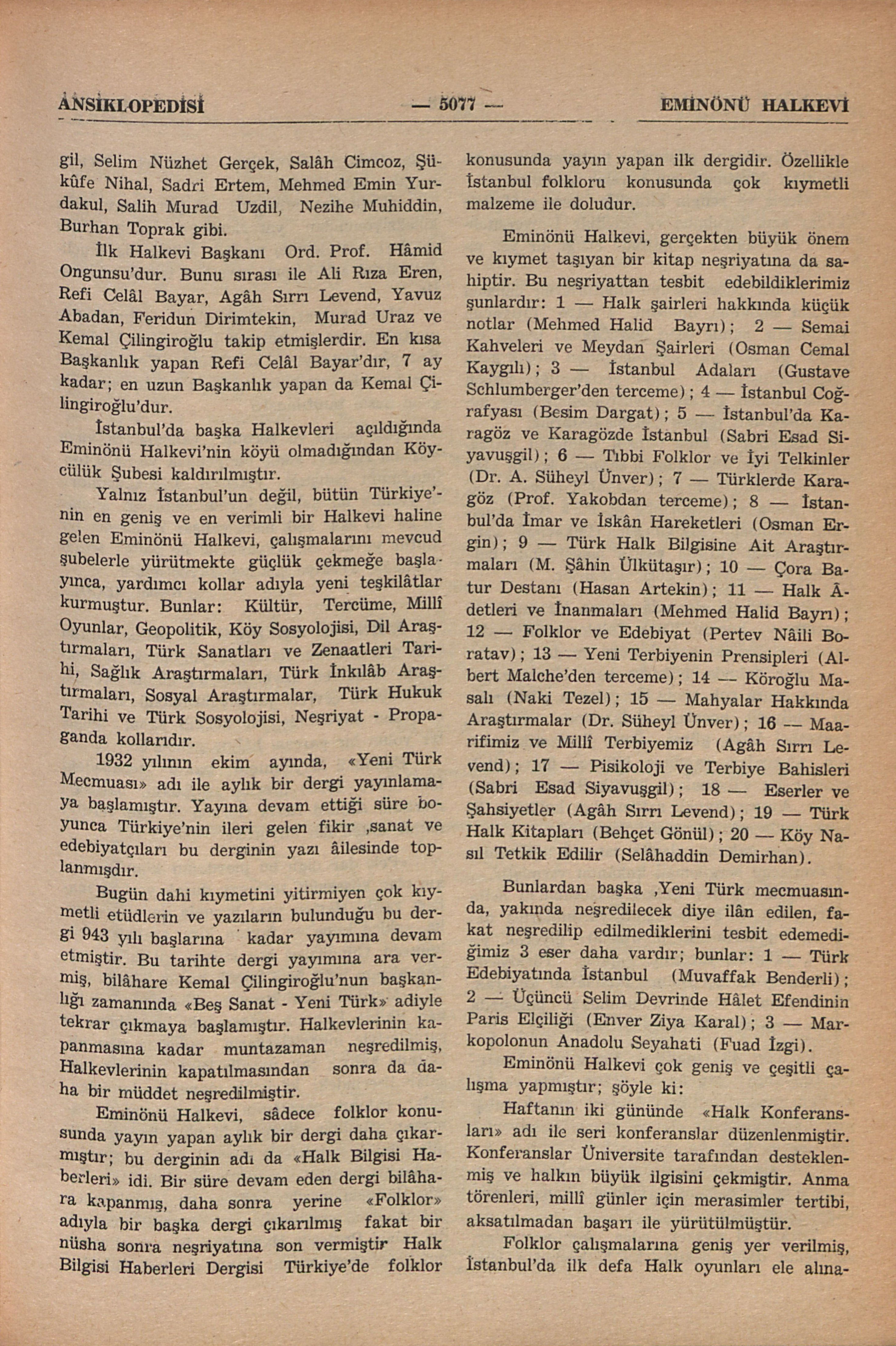 Bugün dahi kıymetini yitirmiyen çok kıymetli etüdlerin ve yazıların bulunduğu bu dergi 943 yılı başlarına kadar yayımına devam etmiştir. Bu tarihte dergi yayımına ara vermiş, bilâhare Kemal Çilingiroğlu’nun başkanlığı zamanında “Beş Sanat - Yeni Türk” adiyle tekrar çıkmaya başlamıştır. Halkevlerinin kapanmasına kadar muntazaman neşredilmiş, Halkevlerinin kapatılmasından sonra da daha bir müddet neşredilmiştir.