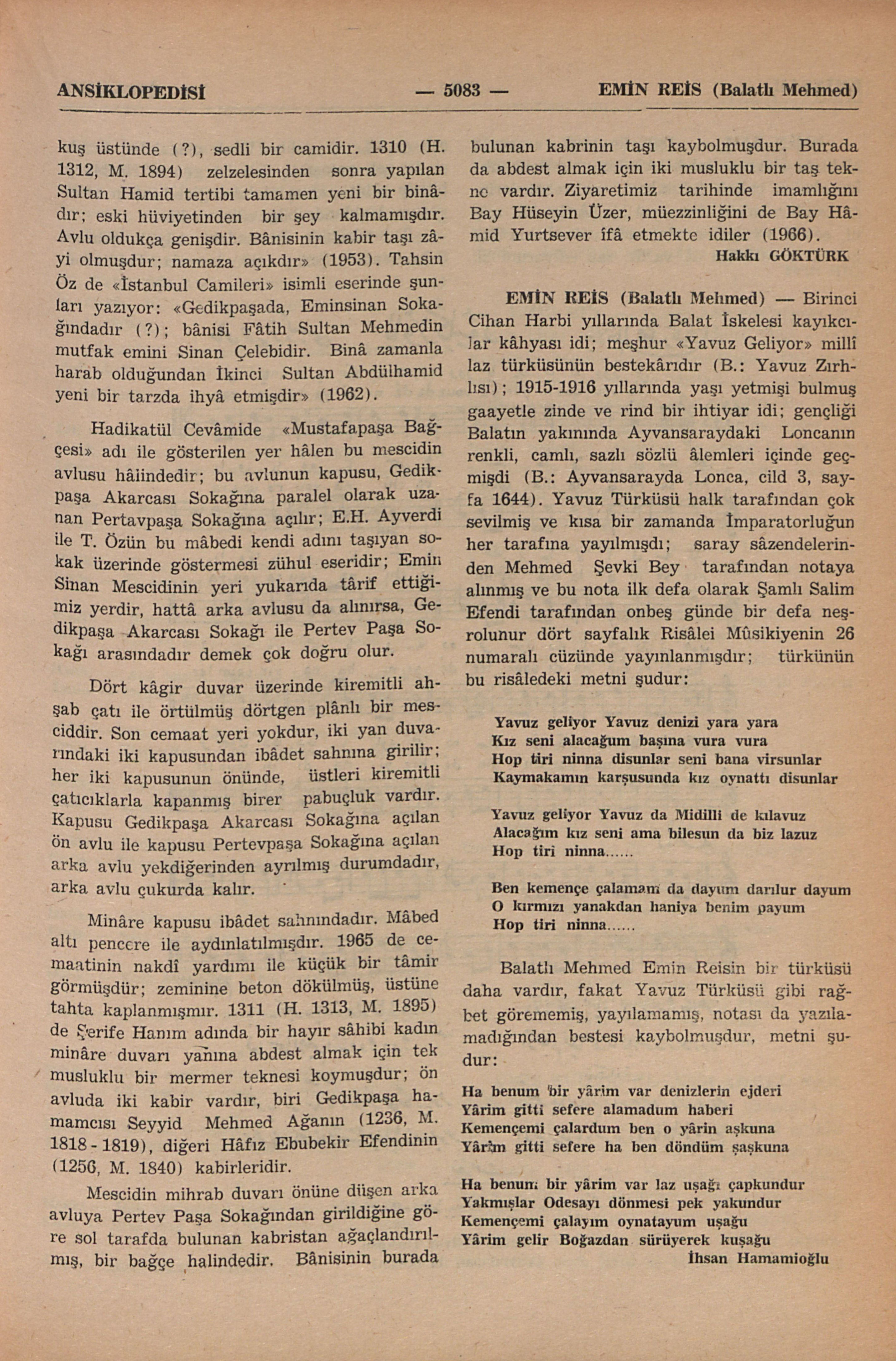 İstanbul Ansiklopedisi kayıtlarıyla ilgili önerilerinizi istanbul.ansiklopedisi@saltonline.org adresine gönderebilirsiniz.
